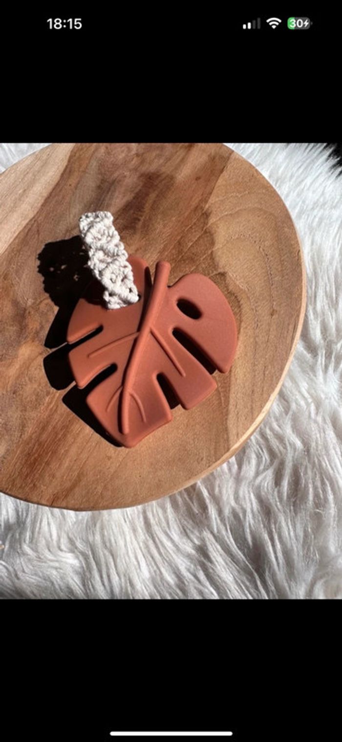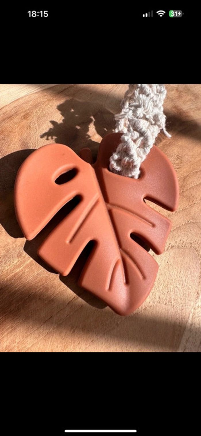 Jouet bébé 🦷 « Anneau » de dentition En silicone souple En Forme de feuille 🍃 Lien en macramé Mon fils ne l’a pas utilisé, pas de traces de dents Comme neuf En parfait état