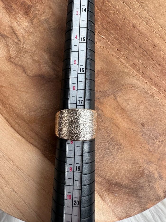 Bague dorée Se référer aux photos pour les mesures Légèrement noircie à un endroit à l’intérieur, voir photos
