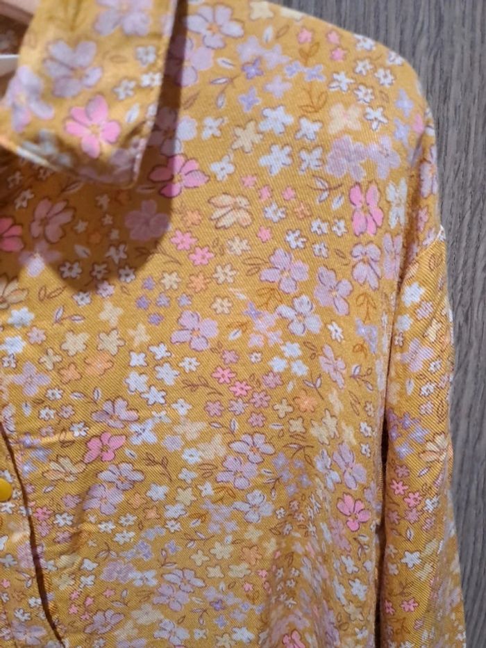 Robe fluide manches longues mi-saison fluide jaune moutarde fleurs effet liberty 8/9 ans H&M - photo numéro 4