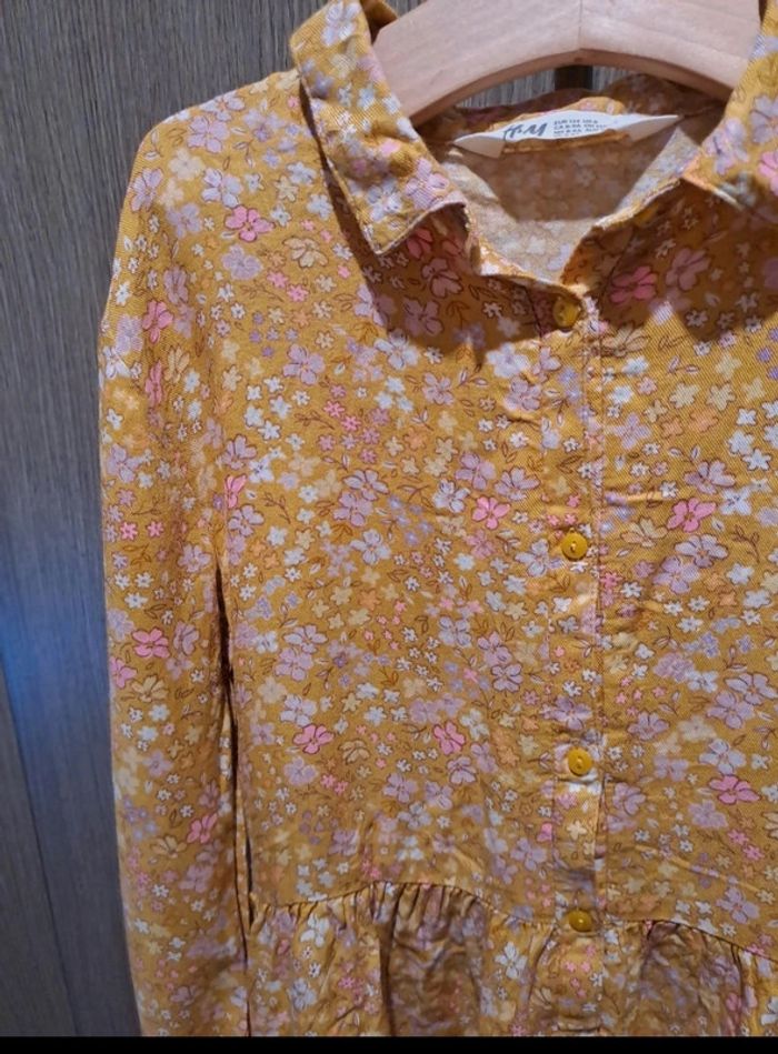Robe fluide manches longues mi-saison fluide jaune moutarde fleurs effet liberty 8/9 ans H&M - photo numéro 1
