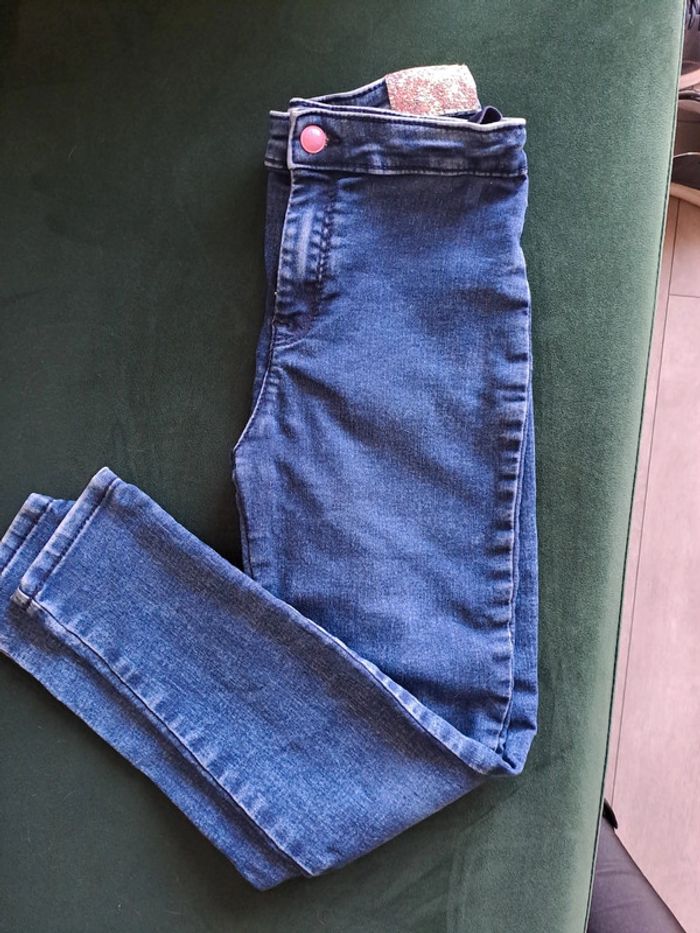 Jeans fille skinny slim stretch brut original marines 9/10 ans - photo numéro 1