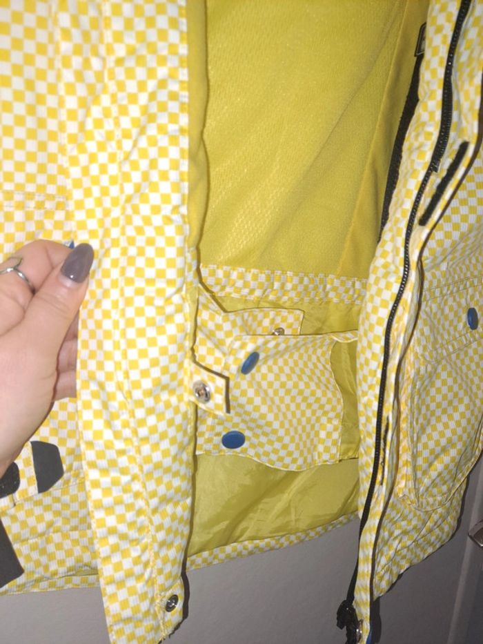 Blouson veste manteau ski sports d'hiver snowboard carreaux jaune blanc obscure 140 cm mixte  10 ans - photo numéro 5