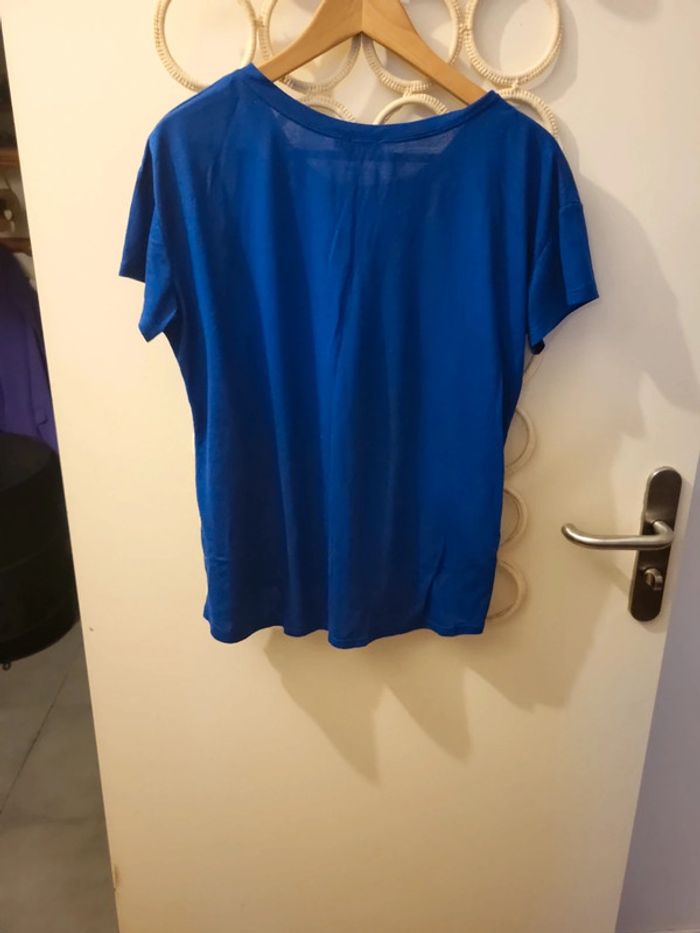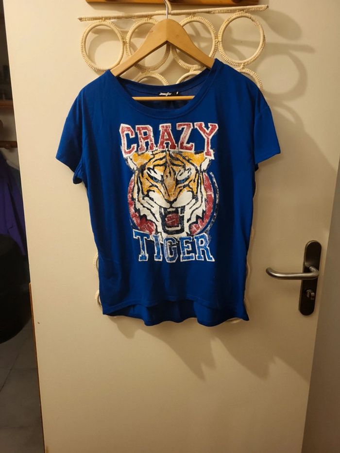 Beau t-shirt bleu avec tigre. Taille M. En bon état. Jennyfer. A plat sous les aisselles 50cm