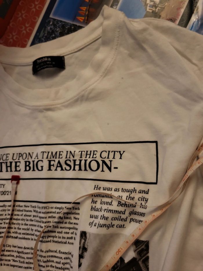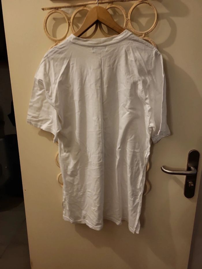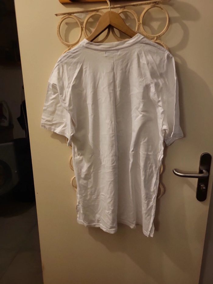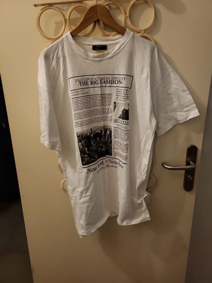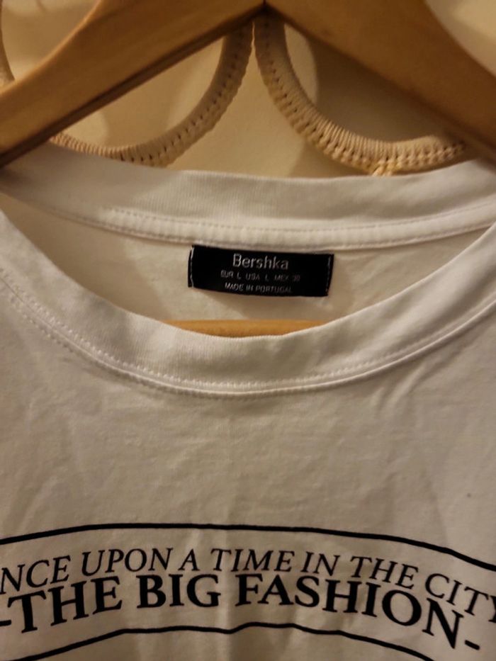 T shirt blanc avec imprimé. Taille L. Berska. Il y a 2 petites taches ( voir derniere photo ). 100 % coton. #echelon1840