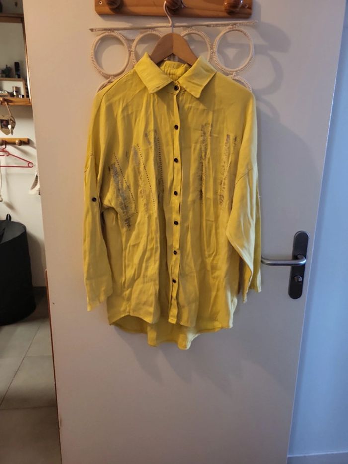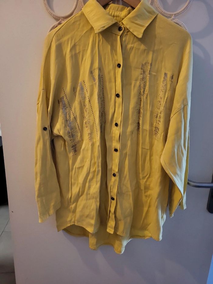 Belle chemise jaune avec petit detail paillette argenté.Taille 44. Bon etat. Épaule à plat 68cm Taille à plat 57cm Longueur total 72cm #echelon1844