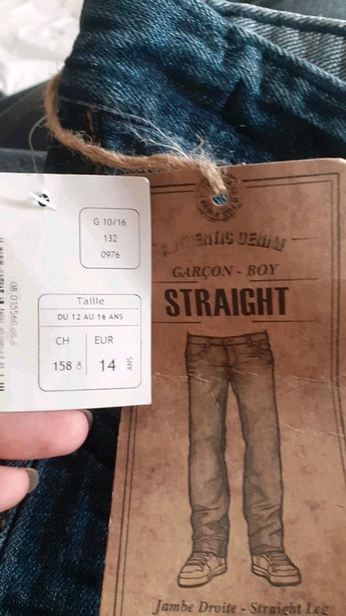 Jean bleau straight denim neuf. Tres bonne qualité. Jamais porter acheter 35euros. Avec encore etiquette. Taille 14ans.
