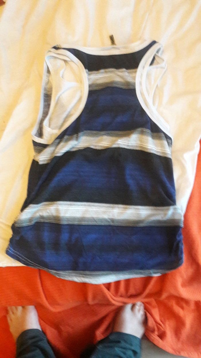 T shirt sans manche à rayure et strass - photo numéro 5