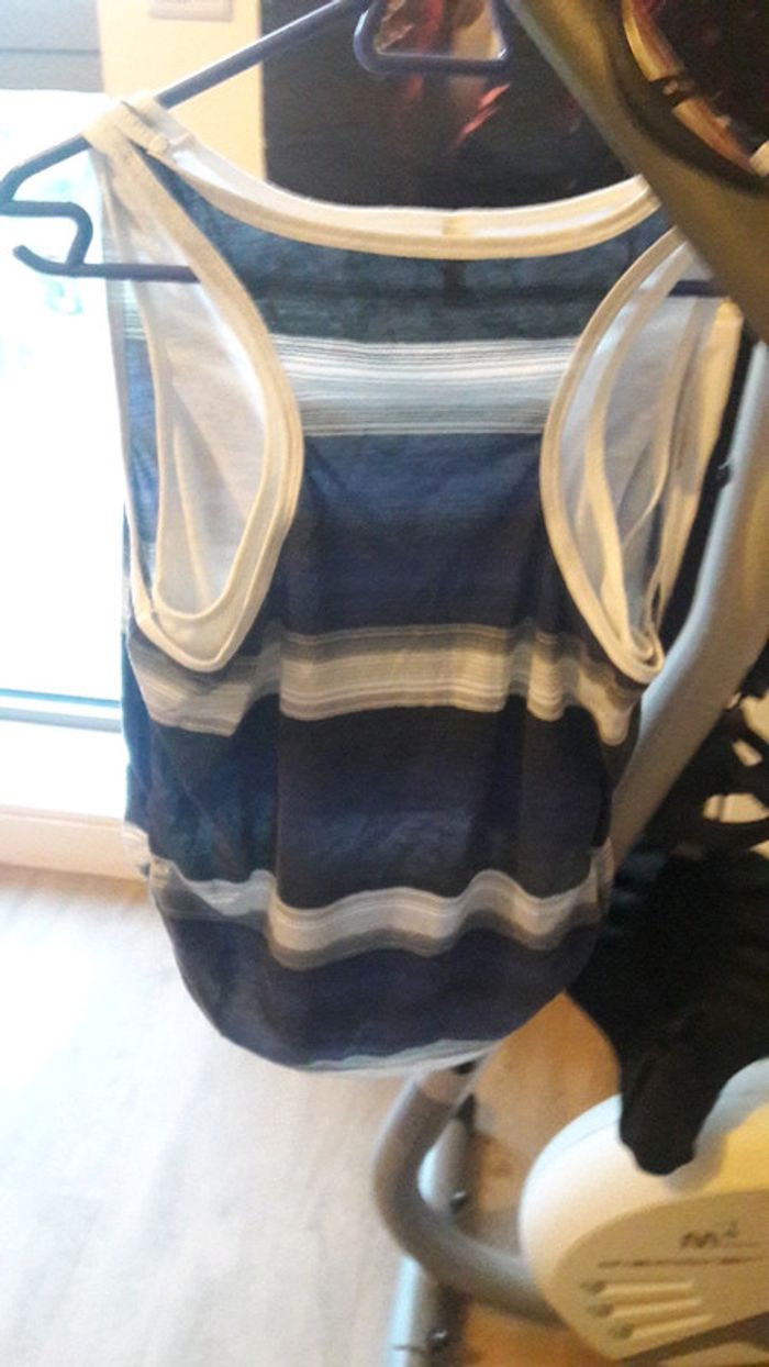 T shirt sans manche à rayure et strass - photo numéro 2
