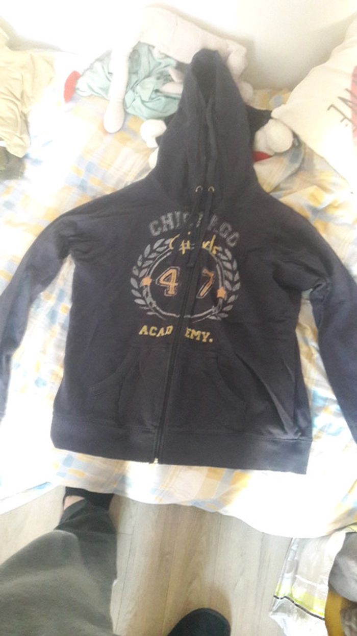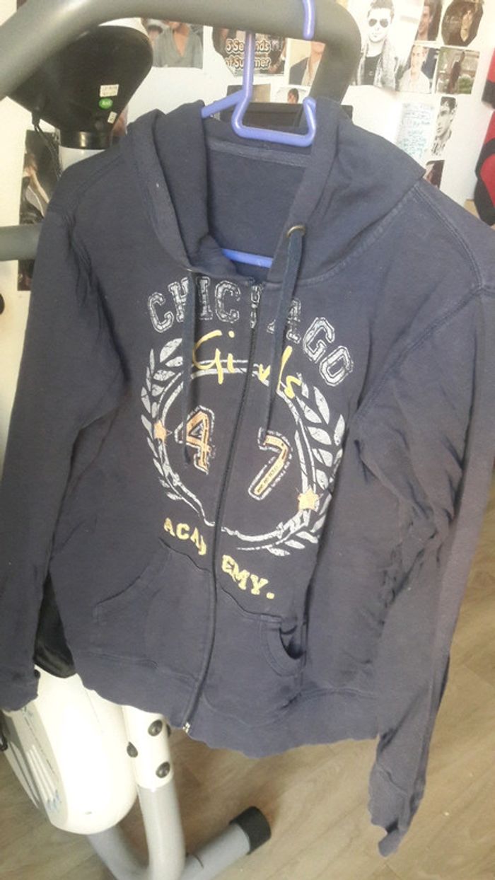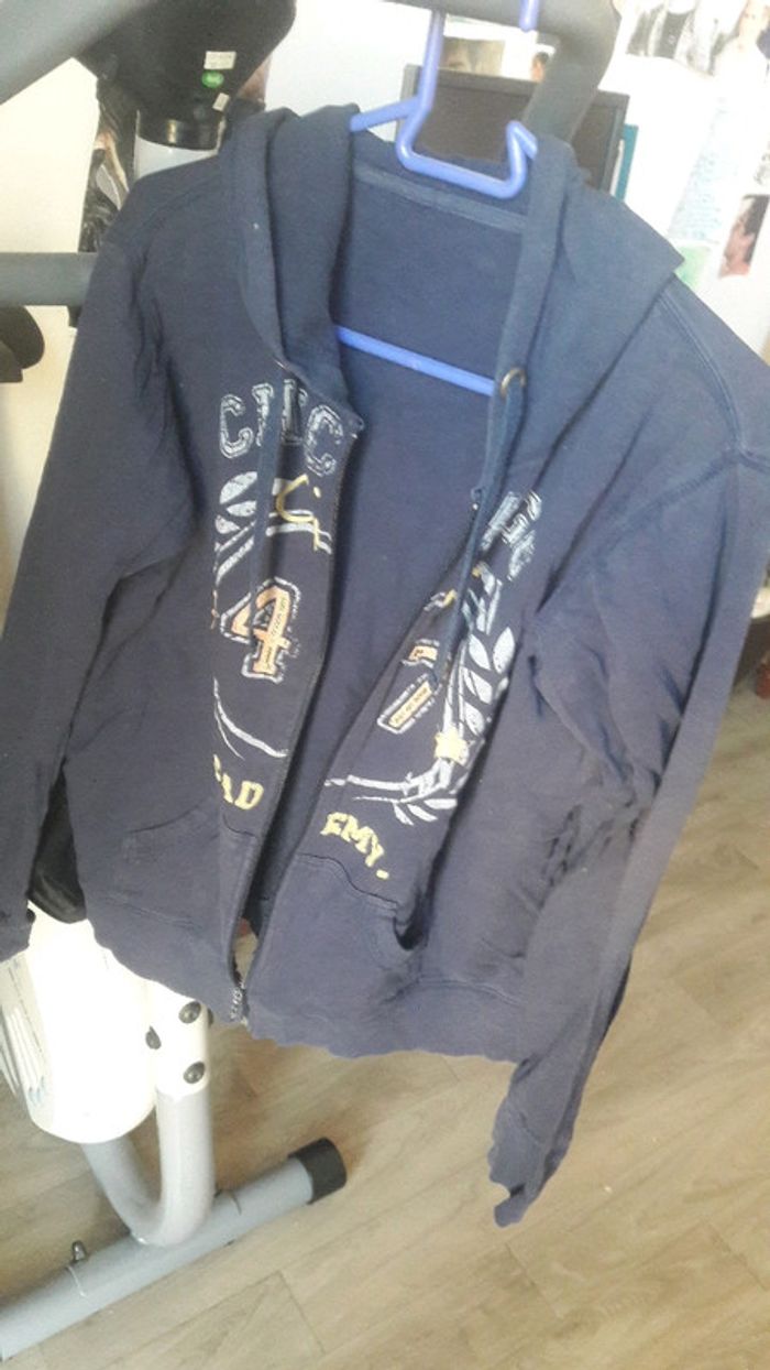 Gilet bleu foncé , porte plusieurs fois