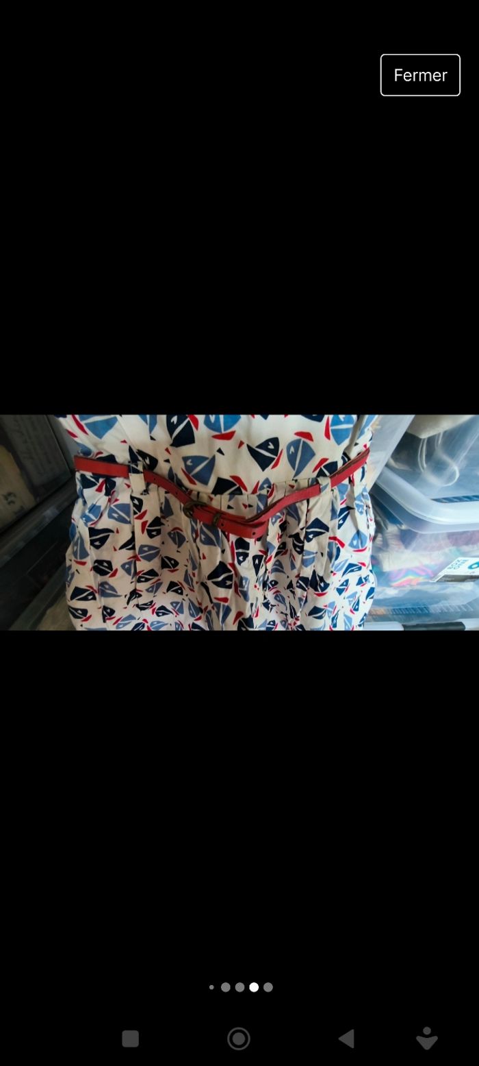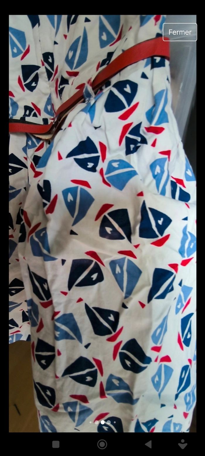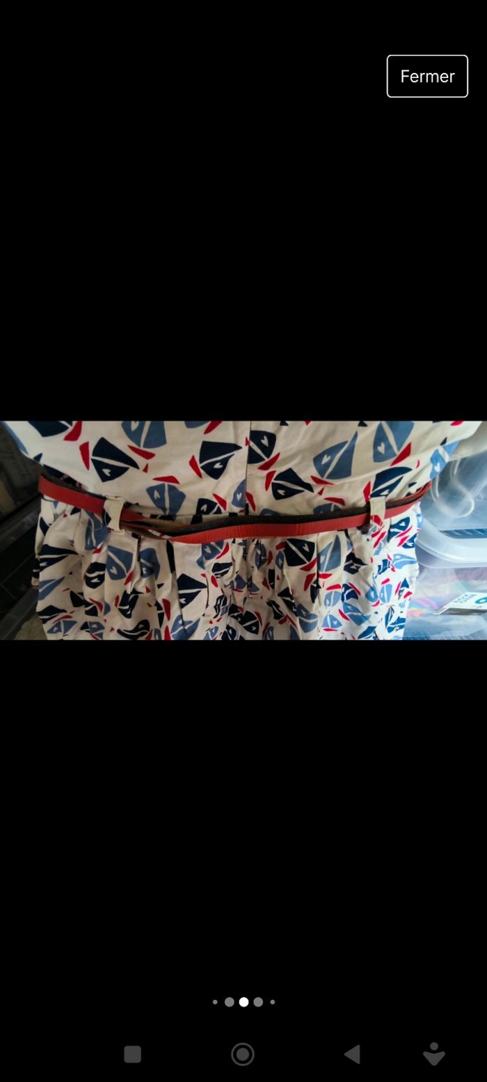 Joli robe marin Devra être lavée quelques petites taches qui partiront au lavage sans problème. Je n'ai pas le temps de m'en occuper désolée , d'où petit prix non négociable merci Ceinture rouge désolée . Peut être remplacée ou recollée sans soucis . Jupon coton en dessous 6 ans Coton