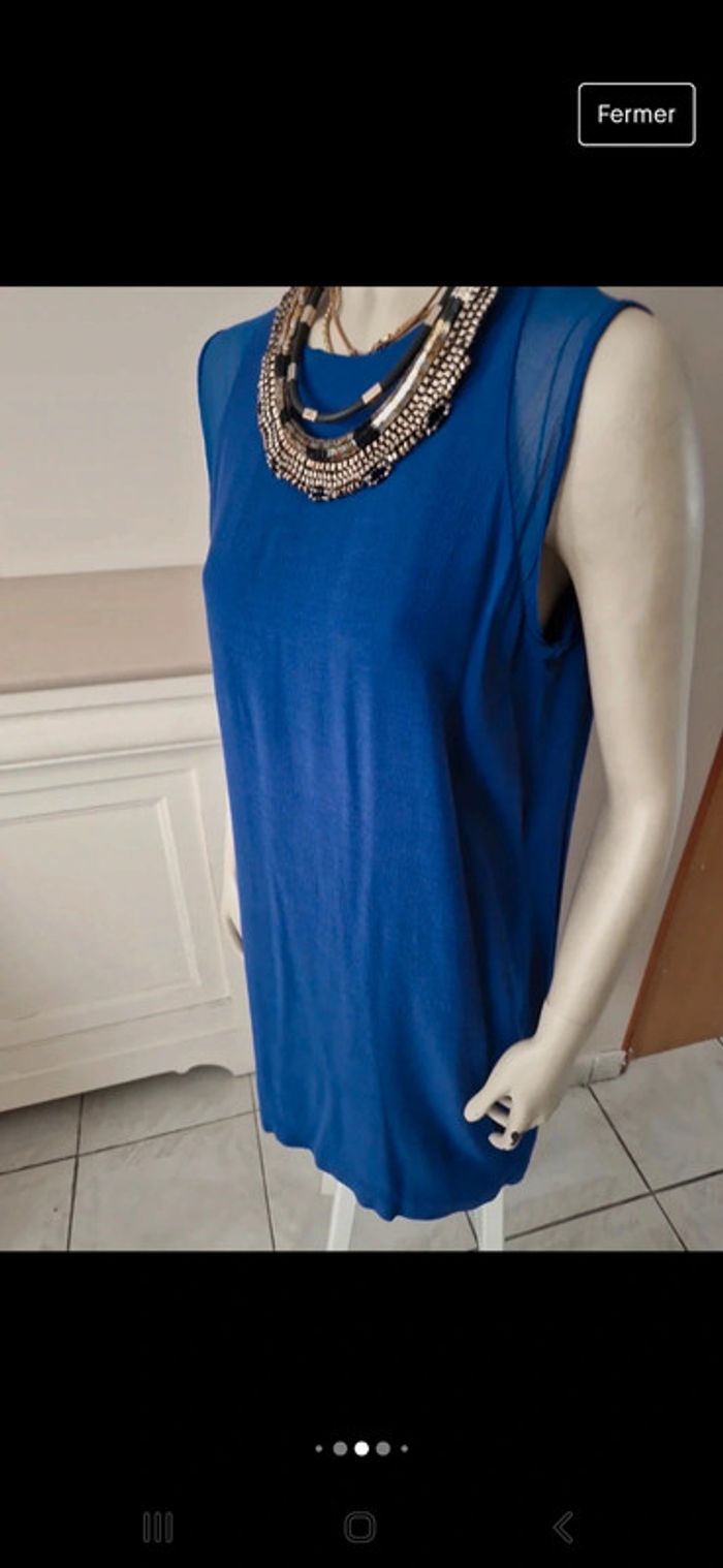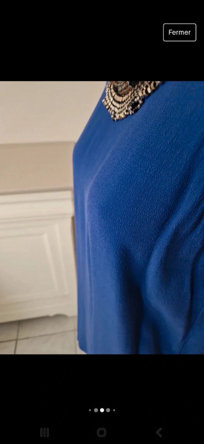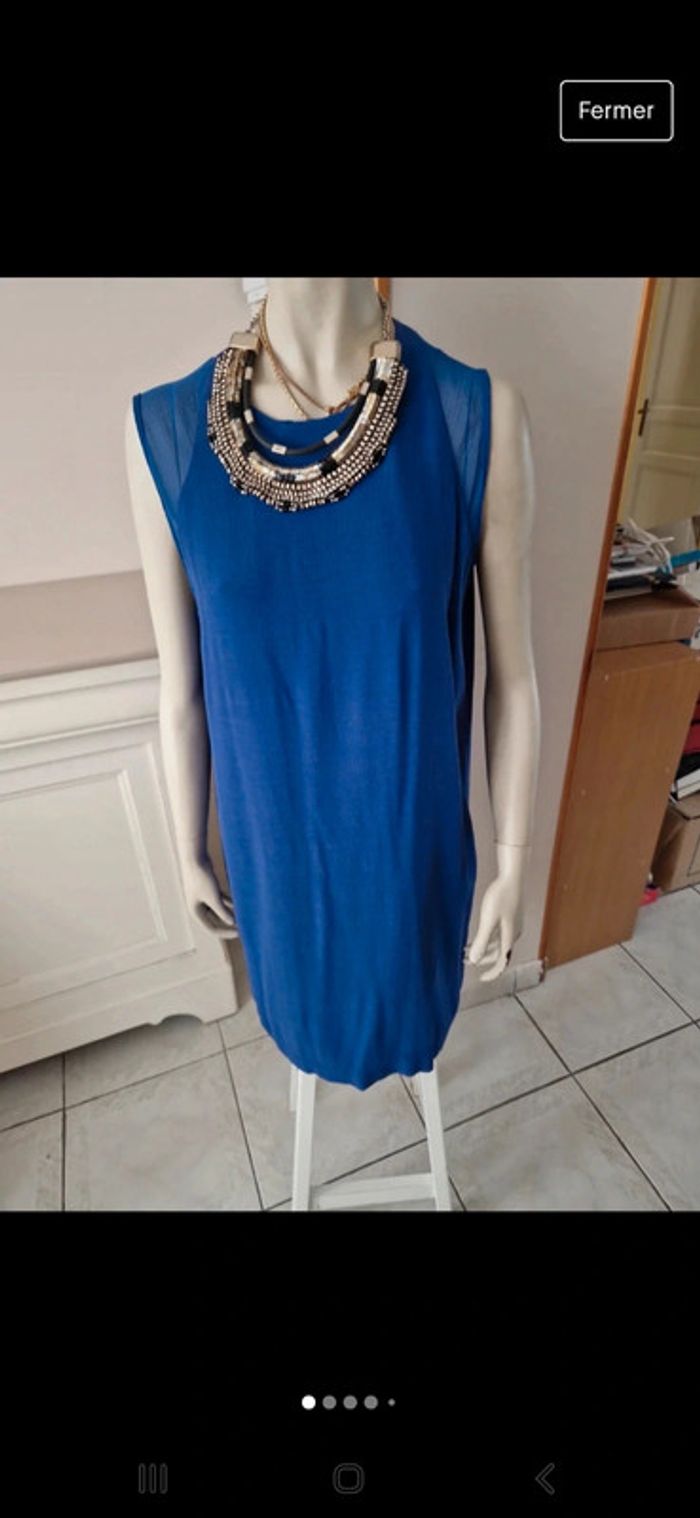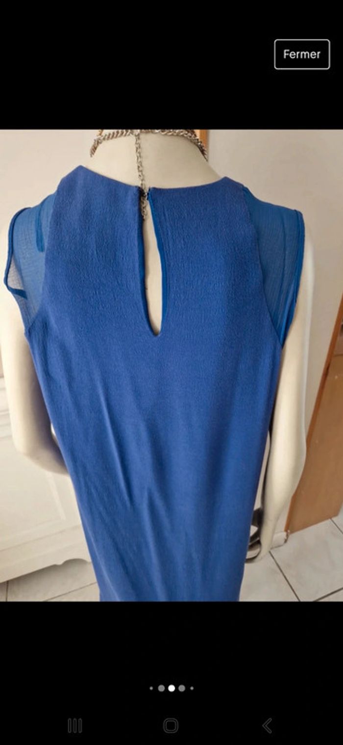 Jolie robe droite doublée avec un voile léger sur les épaules. Décolleté rond. Fermeture par une acroche métallique dans le dos. Tissus très fluide qui tombe bien. Tissus 100%viscose #ellaben_robes #ellaben_bleus