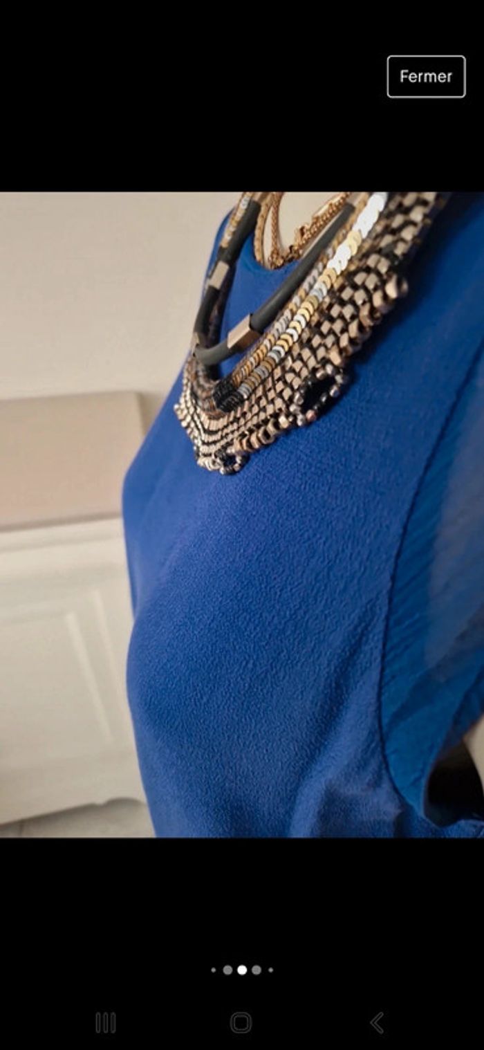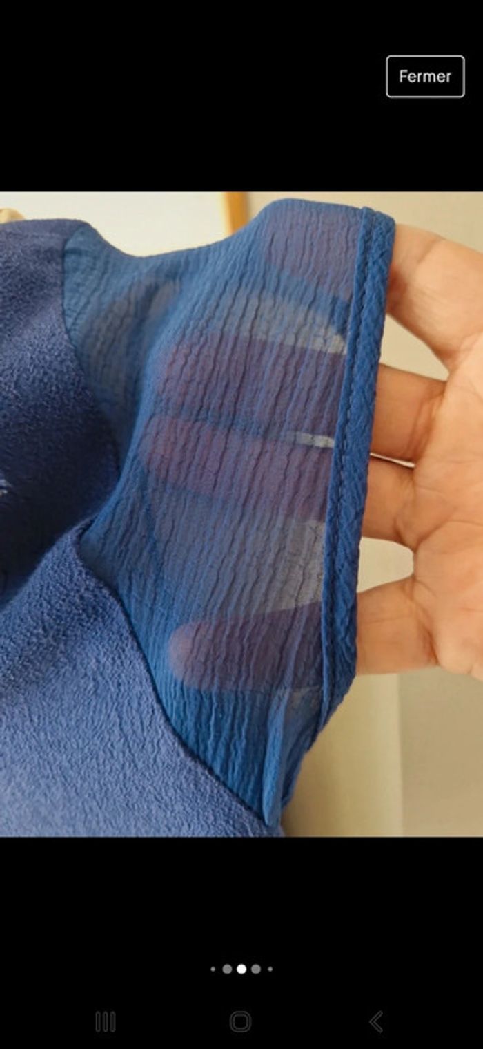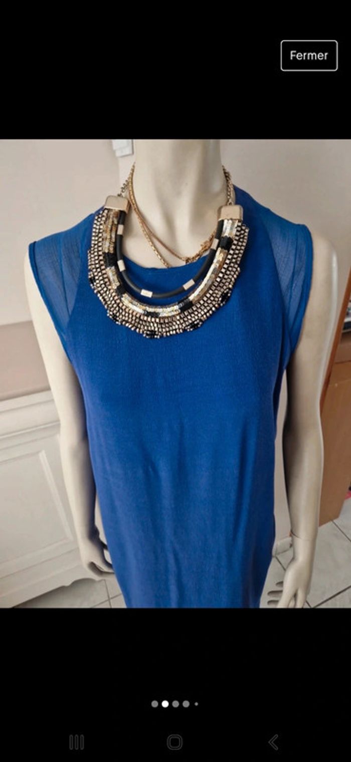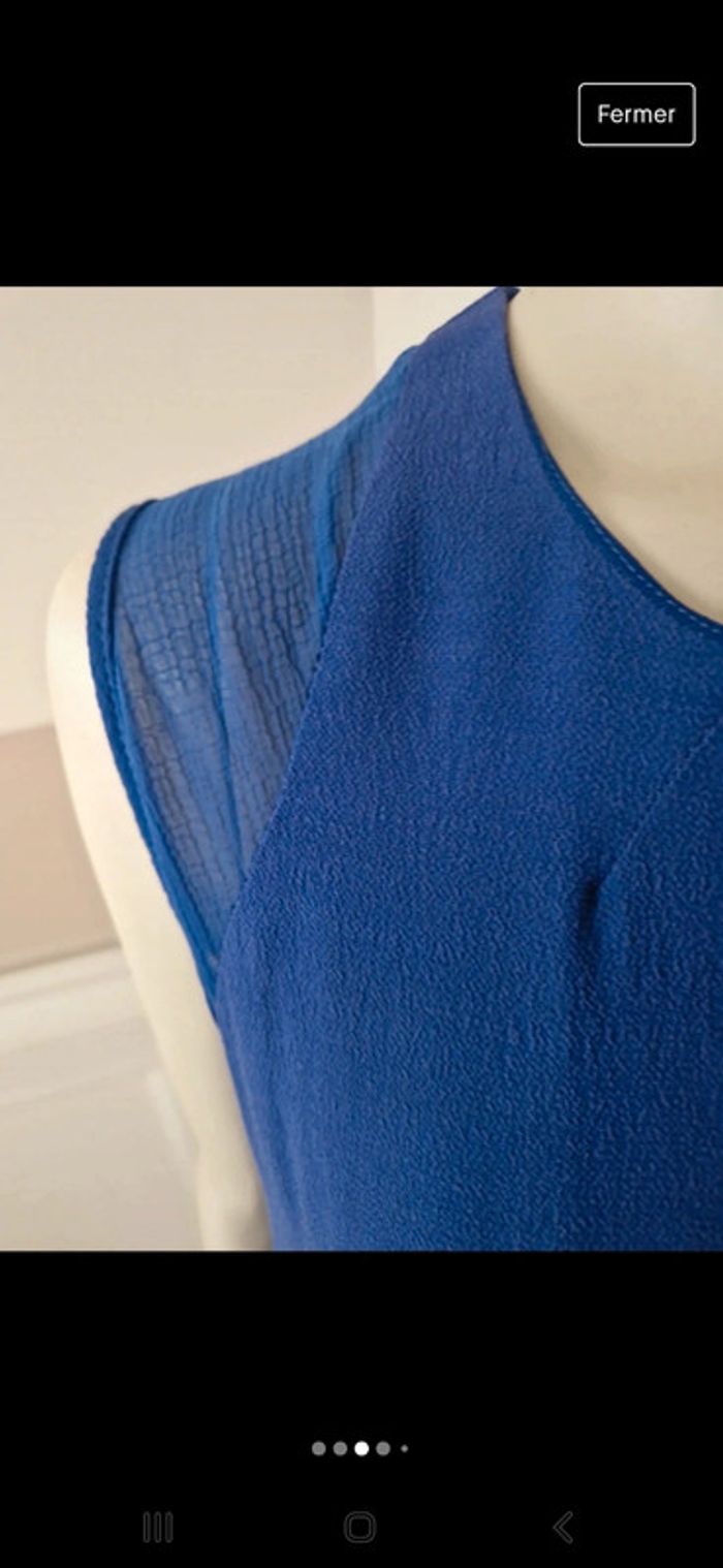 Jolie robe droite doublée avec un voile léger sur les épaules. Décolleté rond. Fermeture par une acroche métallique dans le dos. Tissus très fluide qui tombe bien. Tissus 100%viscose #ellaben_robes #ellaben_bleus