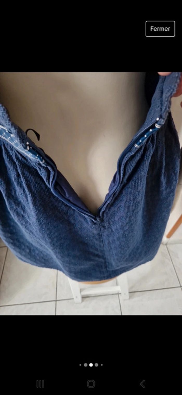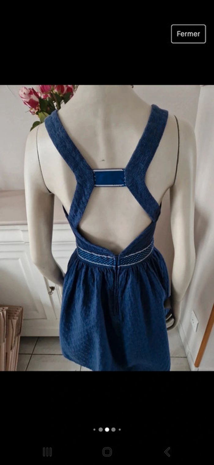 Jolie robe courte avec un décolleté carré devant et derrière un jeux de bretelles original. Robe épaisse doublé Ceinture intégrée dans la robe. Fermeture éclair dans le dos. Le chien en photo est en vente #ellaben_robes #ellaben_bleus