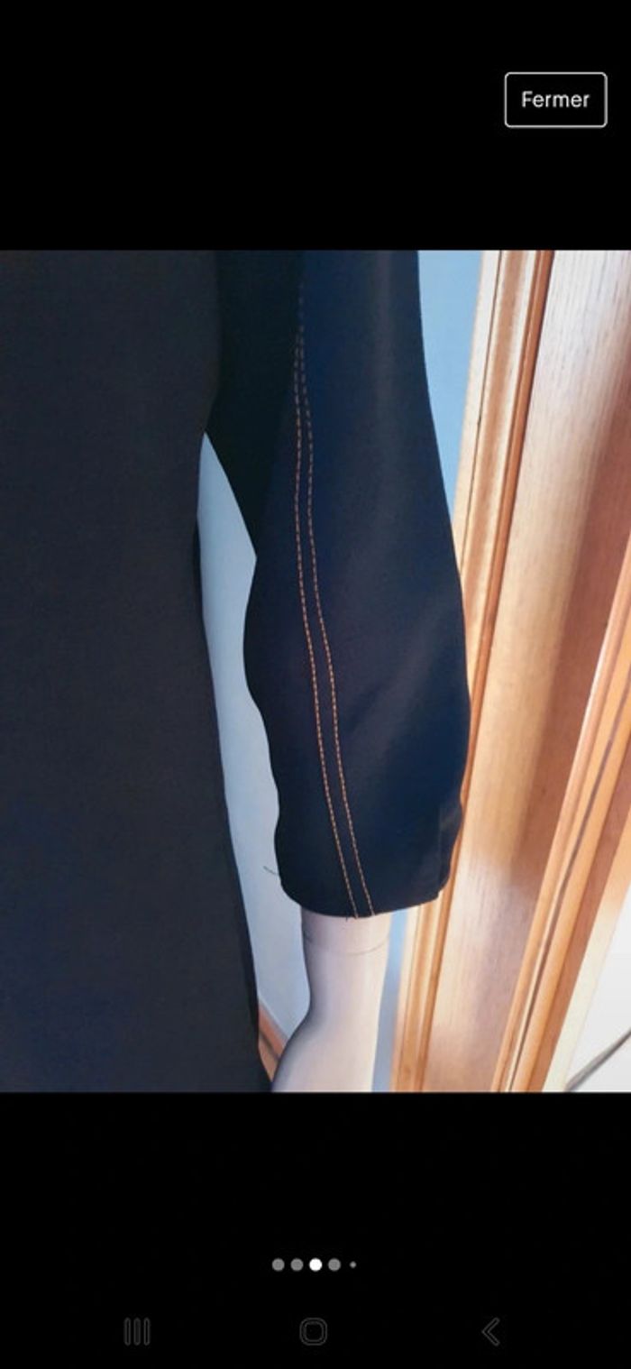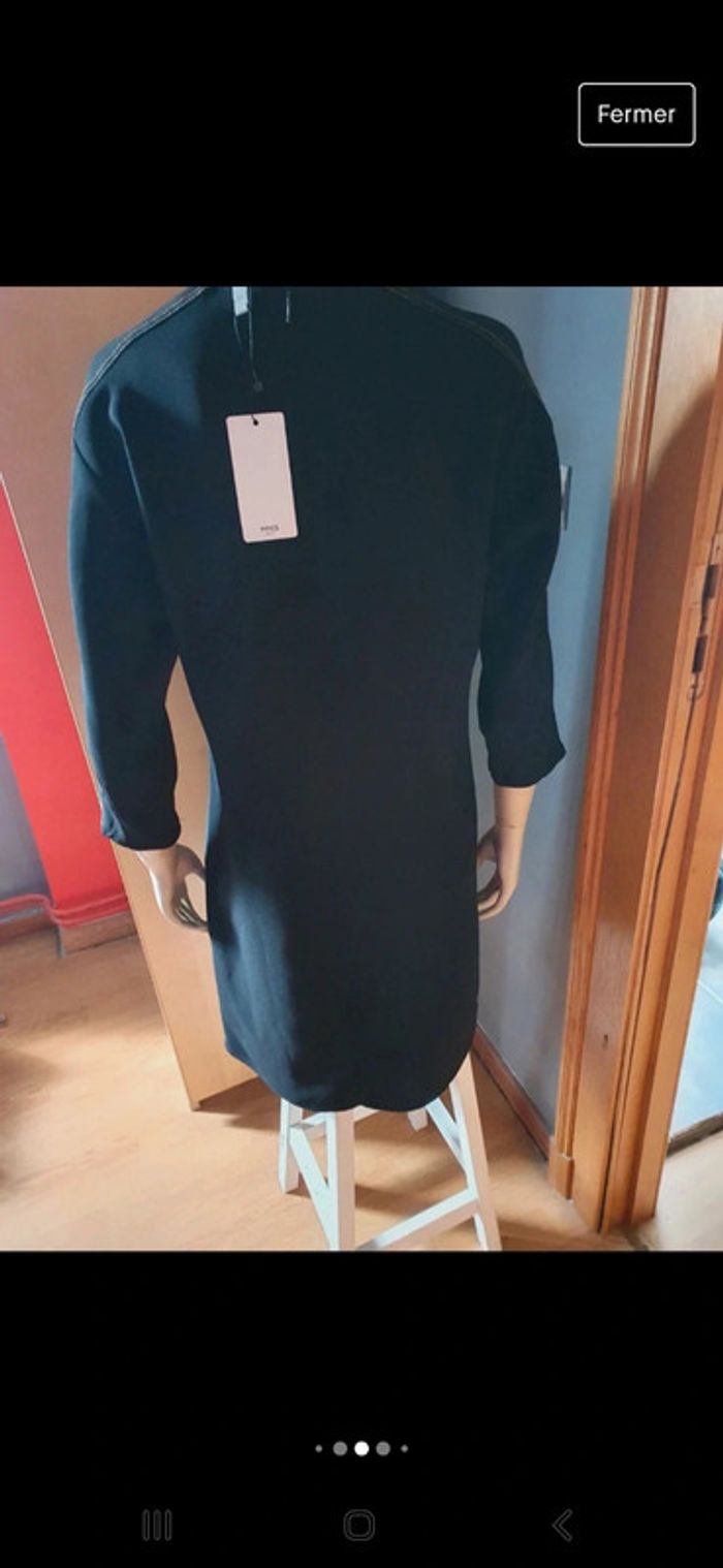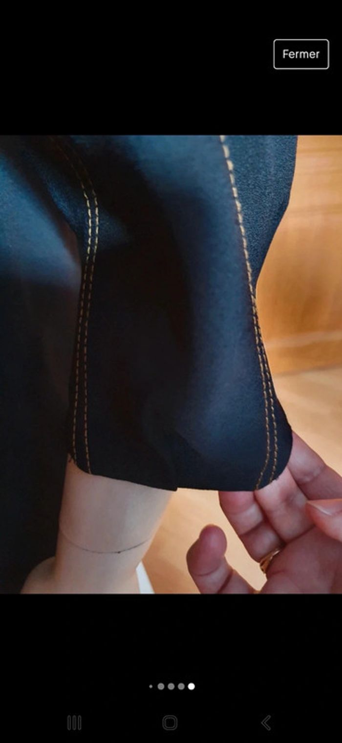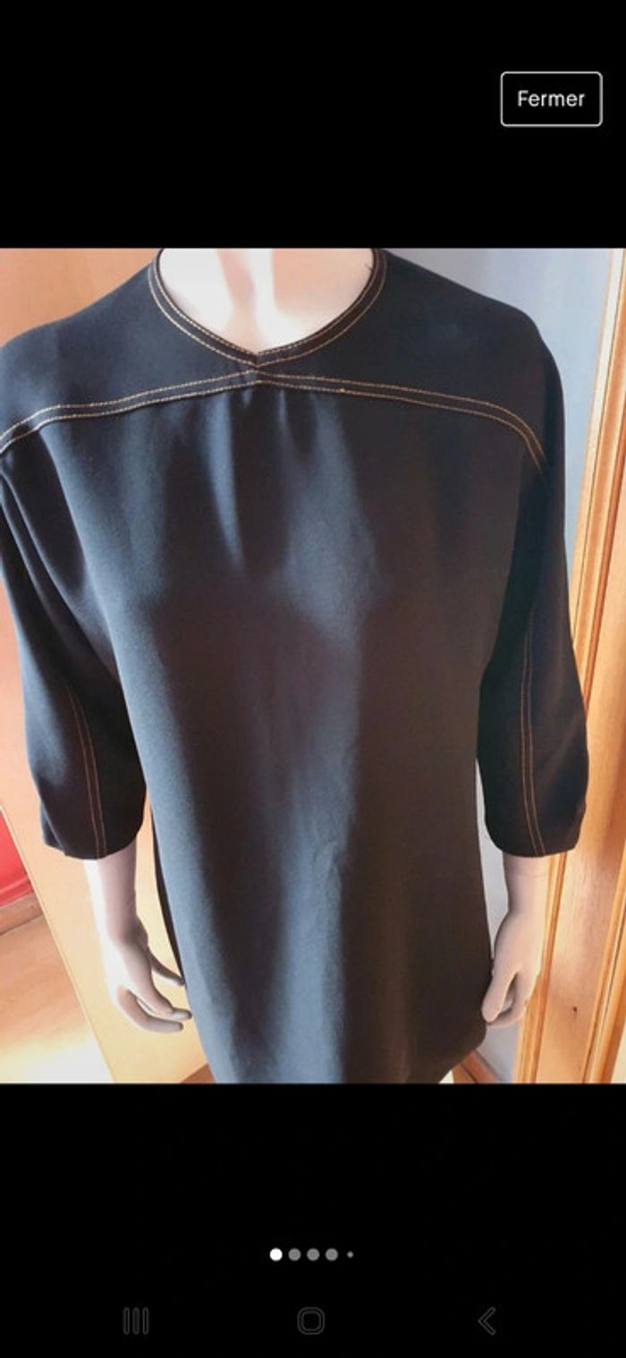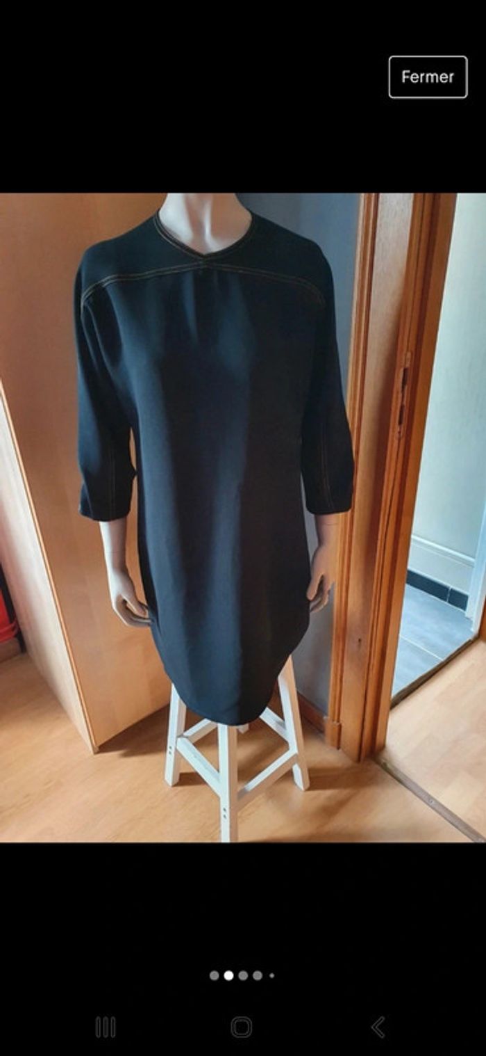 Jolie robe neuve noire avec des surpiqûres de couleurs claires sur la poitrine et les manches Robe droite avec des manches trois quarts. Classique et chic elle est intemporelle. #ellaben _robesnoire #ellaben_robes #ellaben_kdoneufs