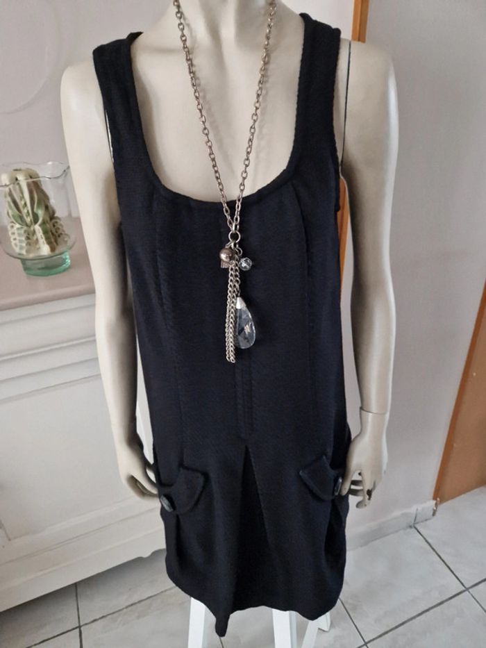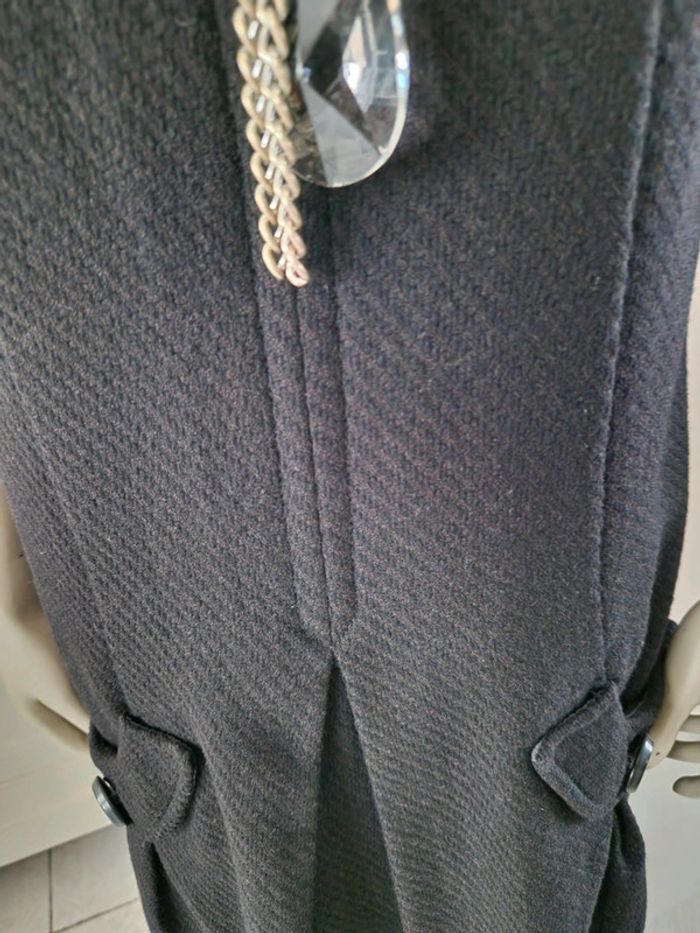 Jolie robe style chasuble avec deux poches munies d'un bouton. Décolleté en arrondi encadré par deux bretelles larges. Un plis devant qui encadrement les poches. Tissus épais pour cette robe hiver. Logo de la marque inscrit sur l'une des poches. Robe entièrement doublée. De nombreuses robes vous attendent sur mon dressing. #ellaben_robes #ellaben_robesnoire