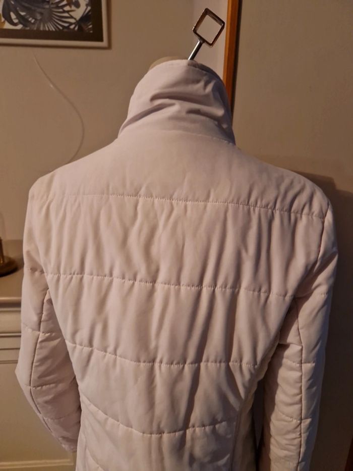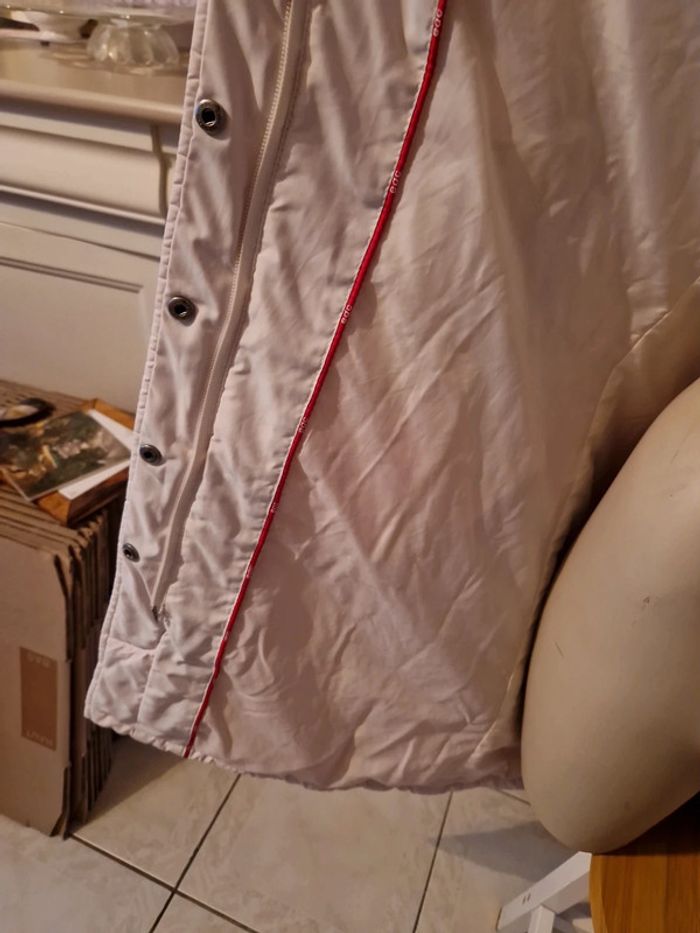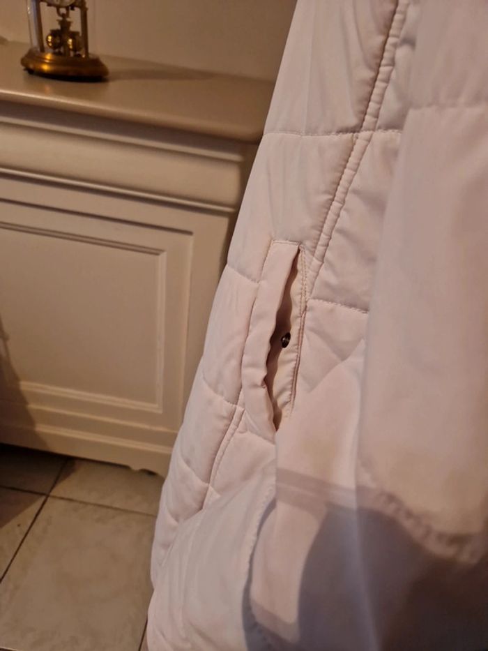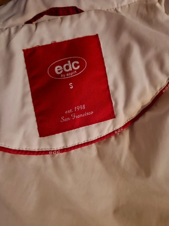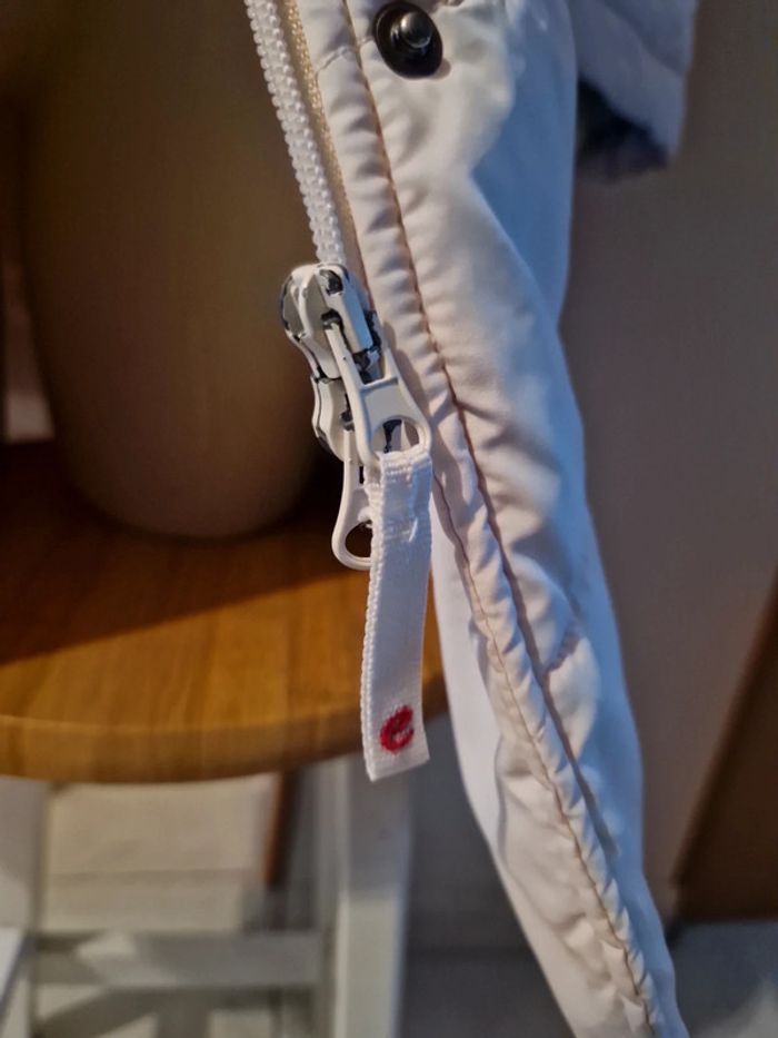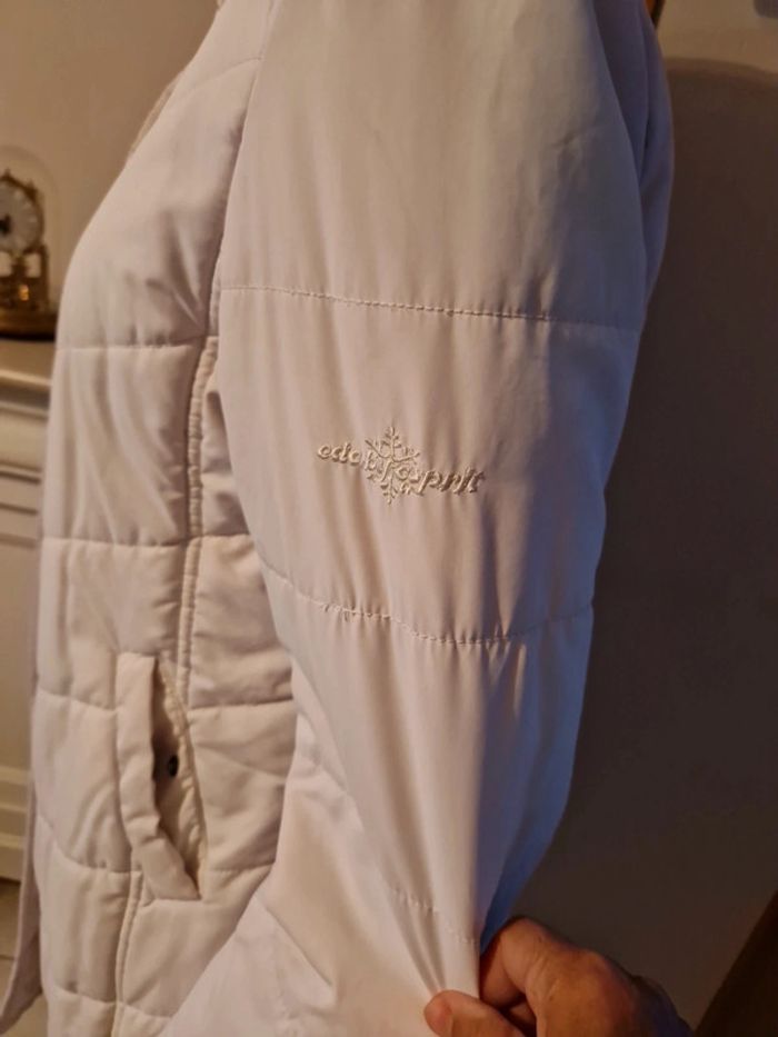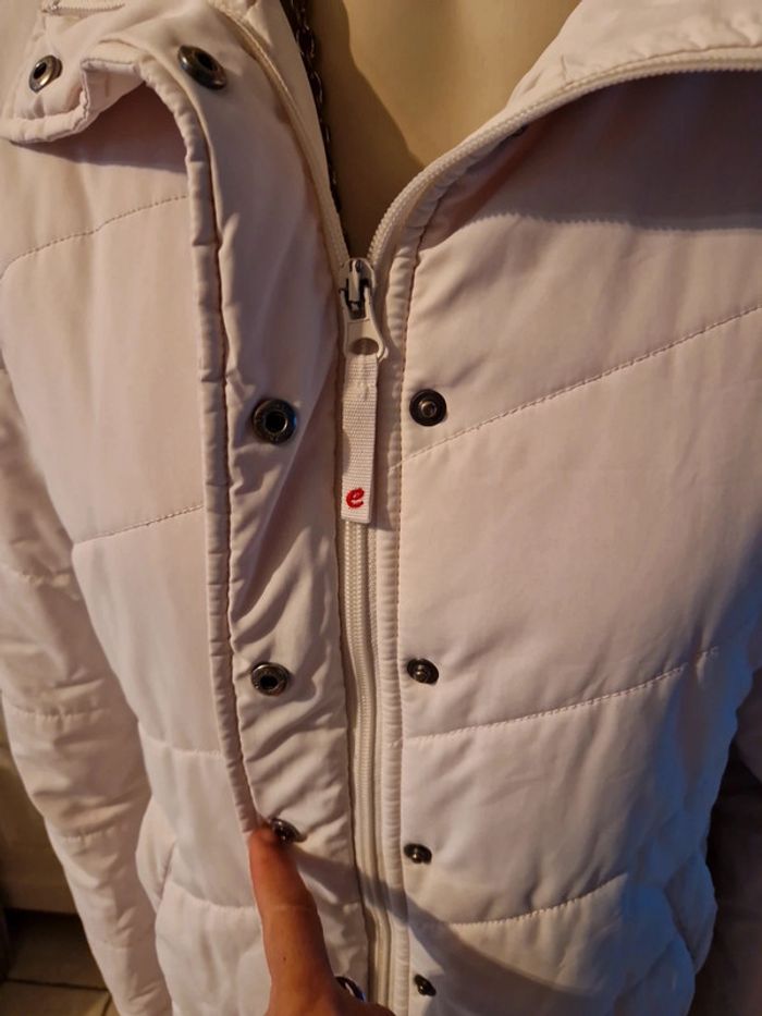 Jolie doudoune matelassée de couleur blanc cassé. Manteau long de la marque Edc by Esprit. Fermeture éclair et boutons pressions Deux poches latérales avec également un bouton pression. Petite poche intérieure avec un scratch. Biais rouge à l'intérieur de la doudoune. #ellaben_manteau #ellaben_skis