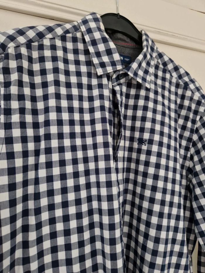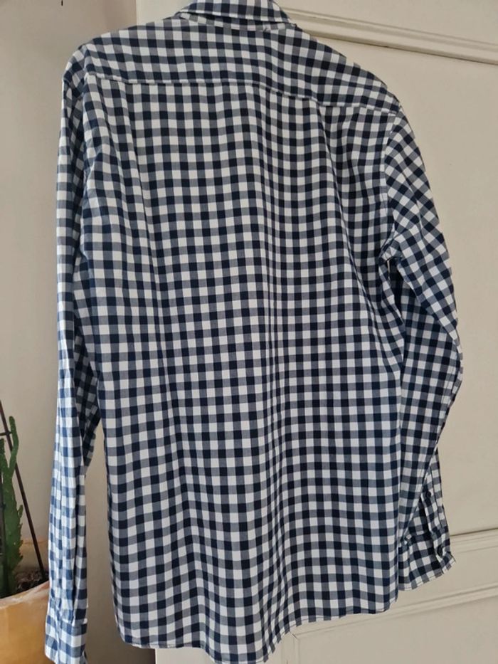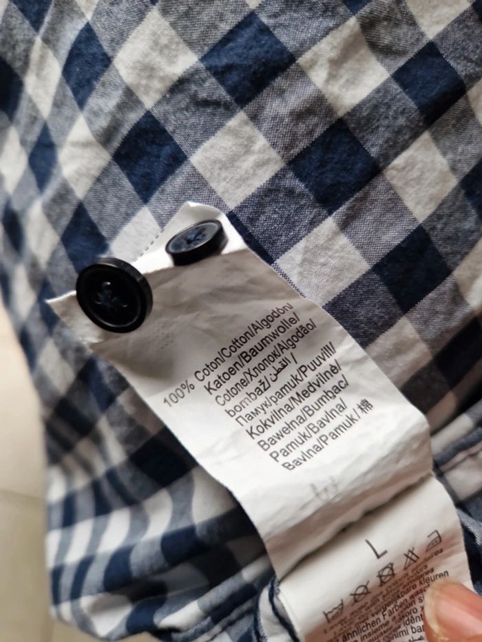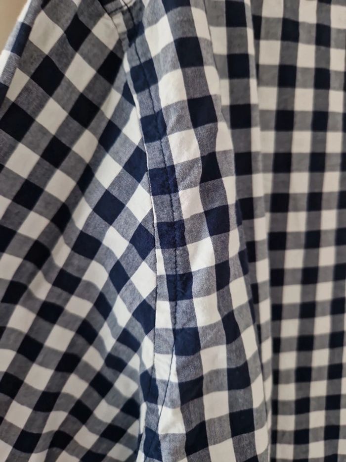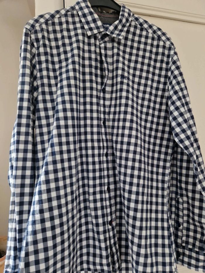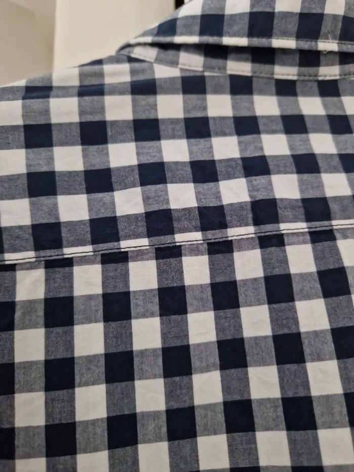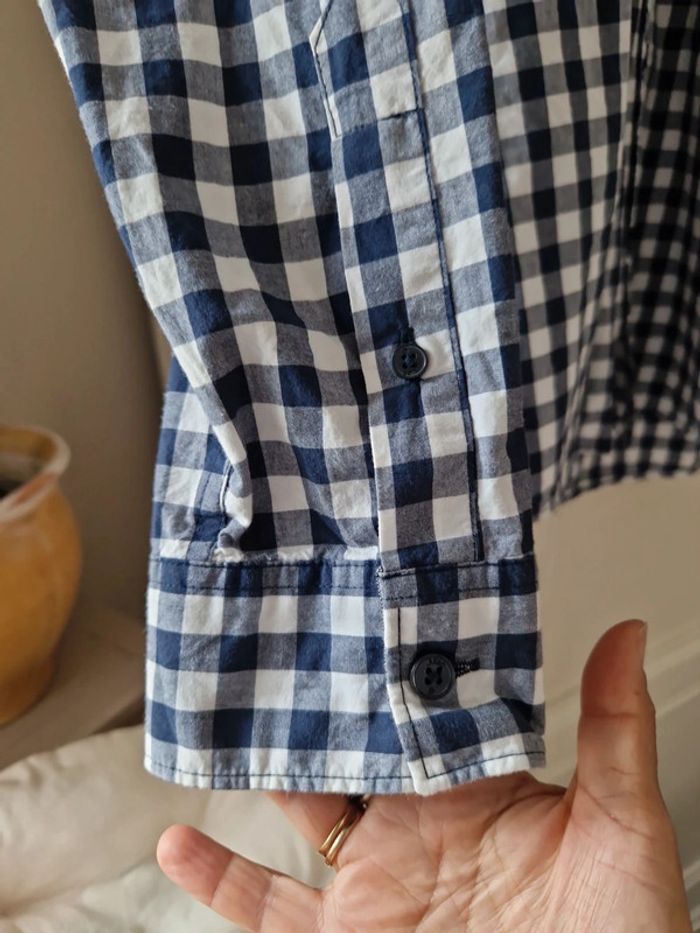 Une chemise à carreaux manches longues avec une broderie sur la poitrine.