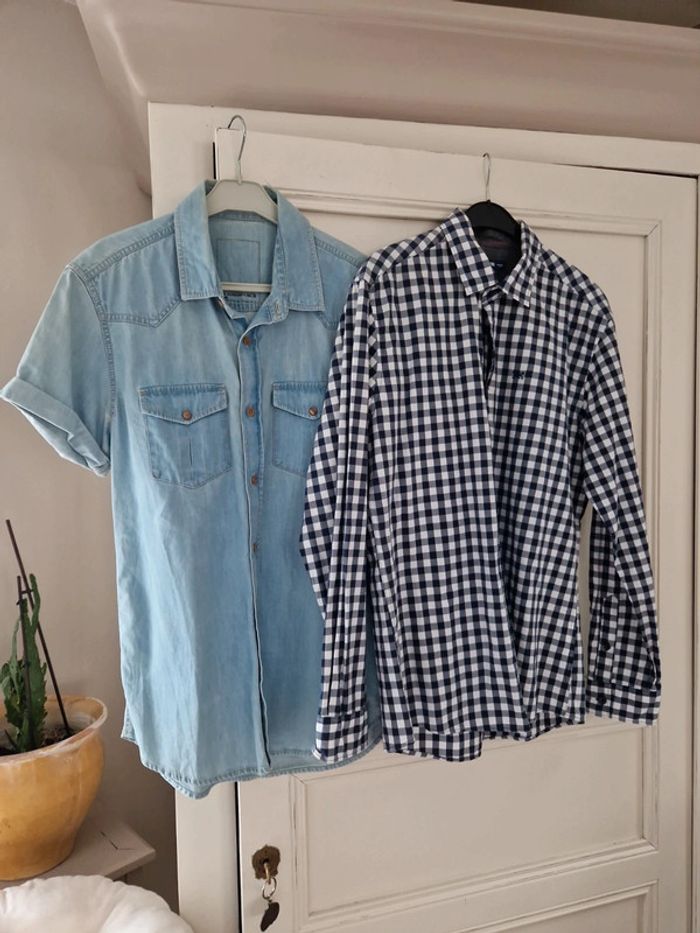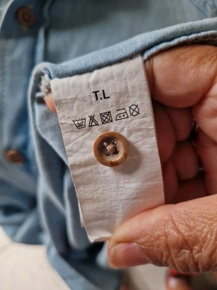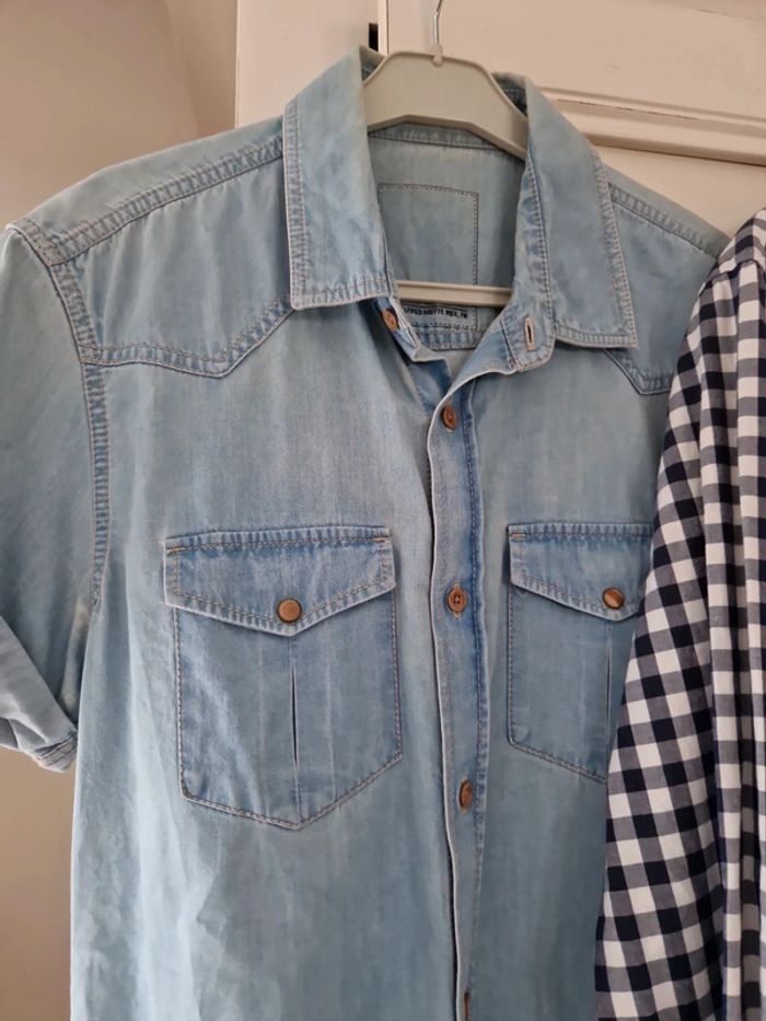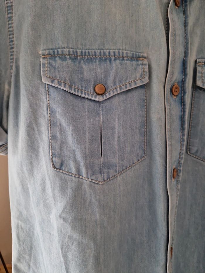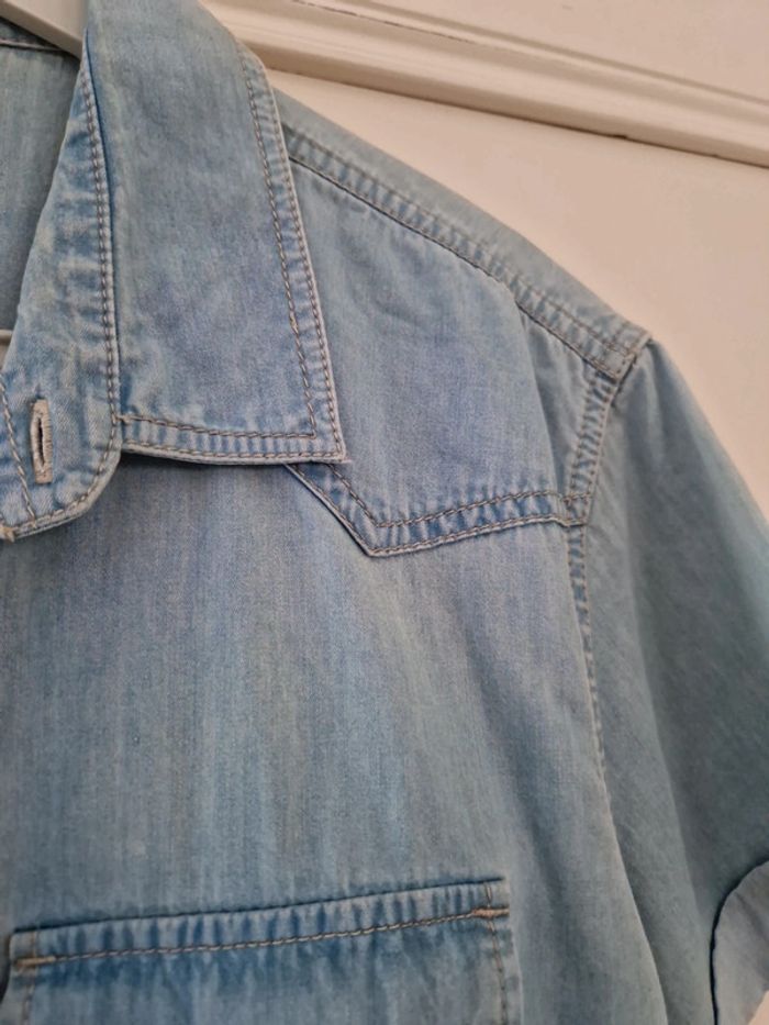 Une chemise en jeans avec des manches courtes.