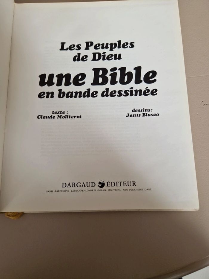 Une bible en bande dessinée .J.Blasco et C.Moliterni. Aux éditions Dargaud. Édition augmentée de 42 planches inédites. Si ce sujet vous intéresse j'ai énormément de livres bibliques sur un autre site et dans mon dressing. #ellaben_livres
