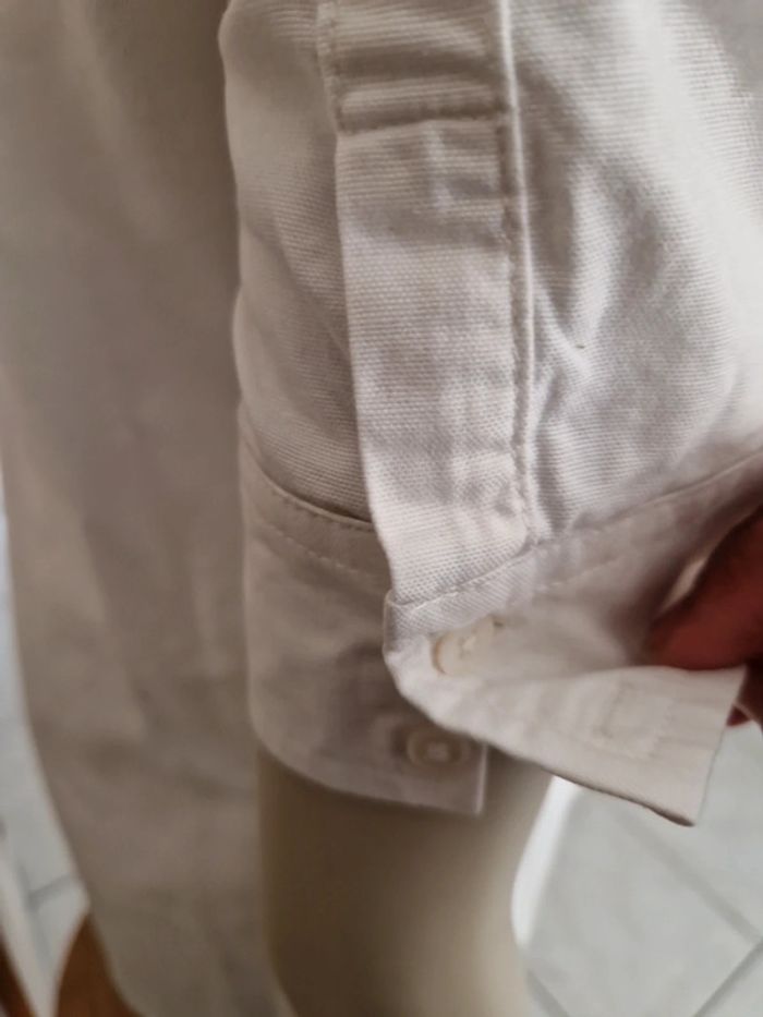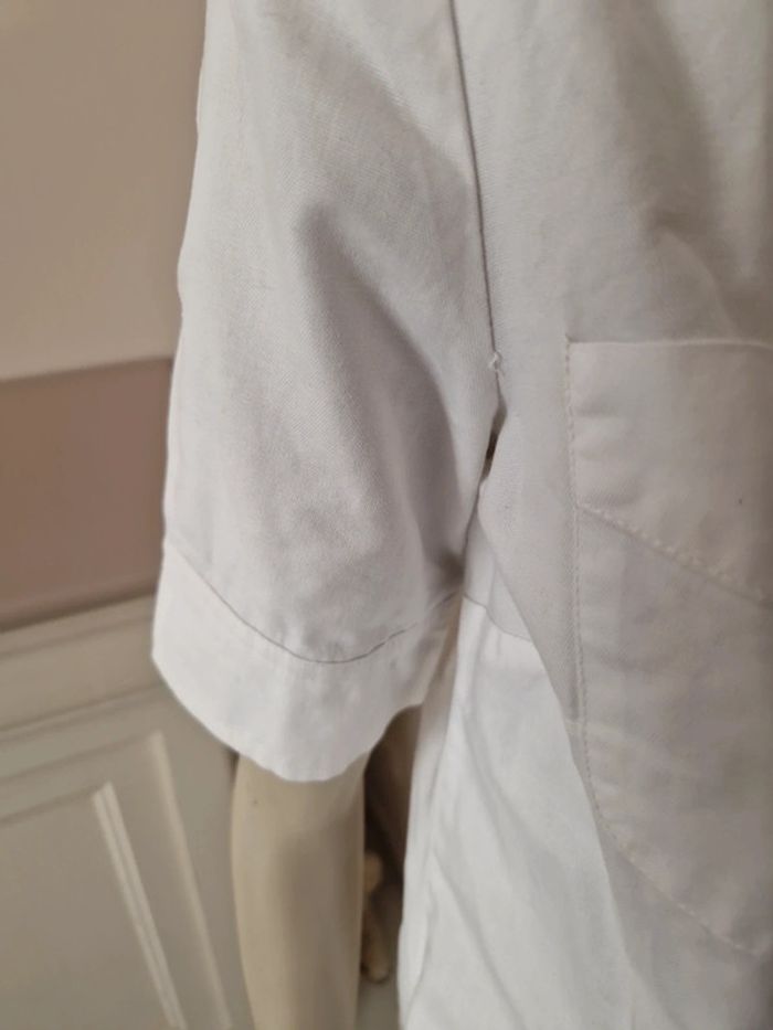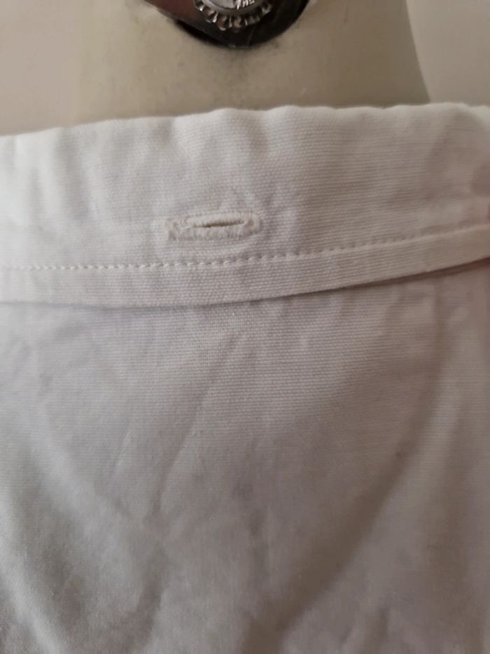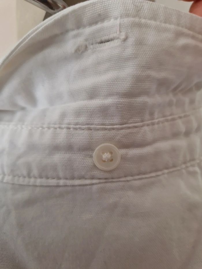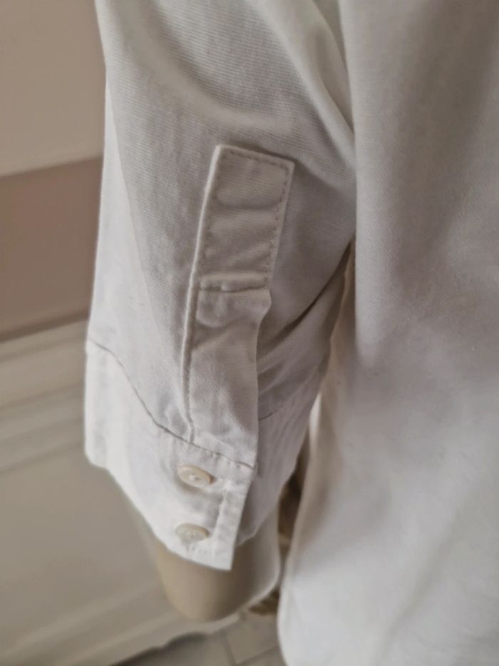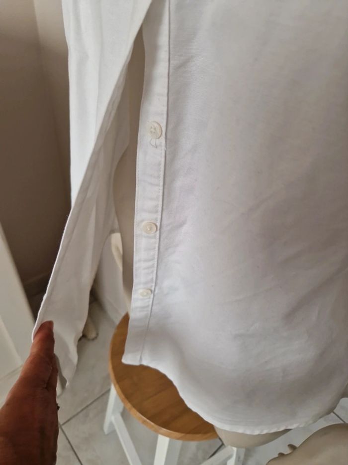 Jolie chemise blanche manches courtes avec deux boutons et un revers. . Une rangée de boutons du haut en bas ainsi qu'au deux pointes du col et derrière. Chemise coupe sport 100% coton. #ellaben_chemisefemme