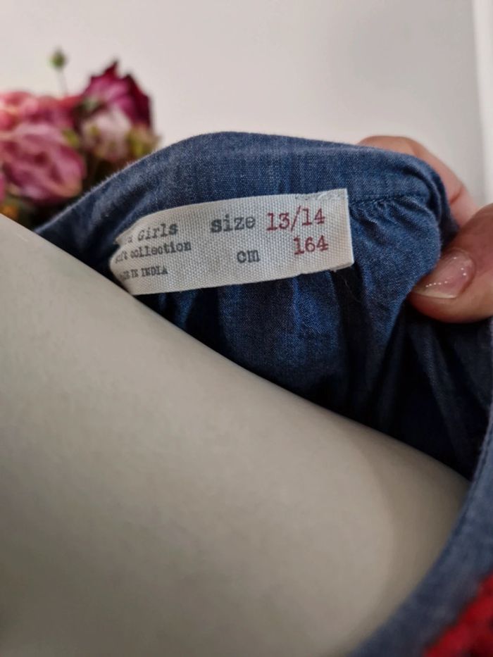 Robe tunique qui taille grand sur l'étiquette intérieur est noté les indications suivantes : 13/ 14 ans et 164 cm.
