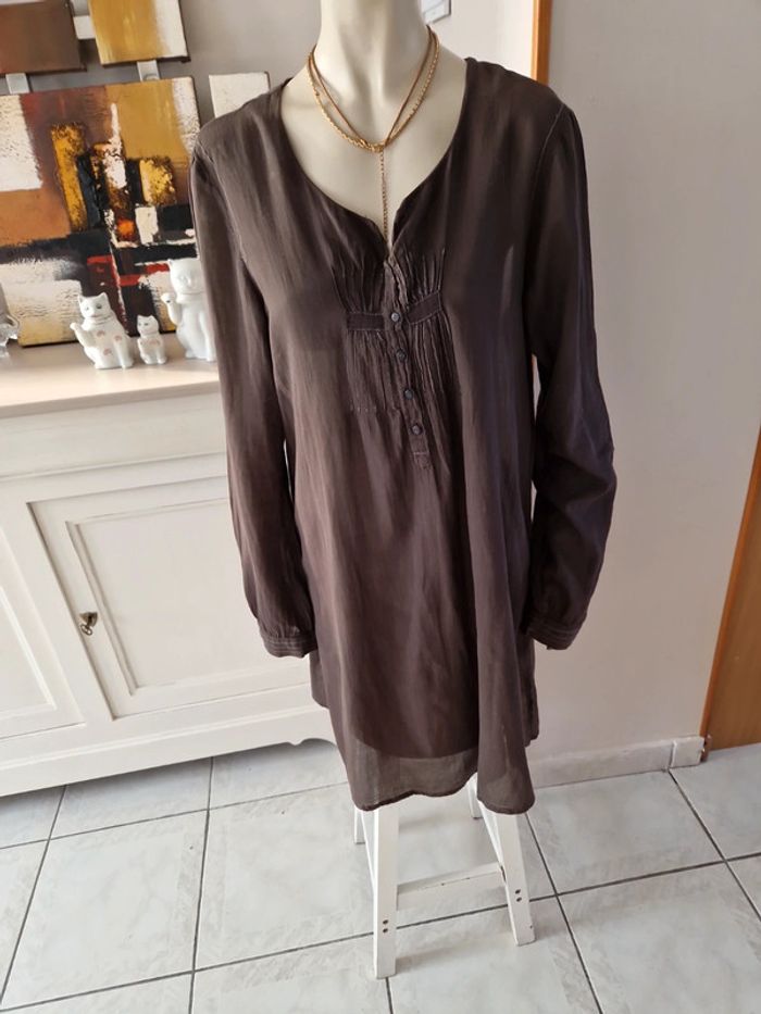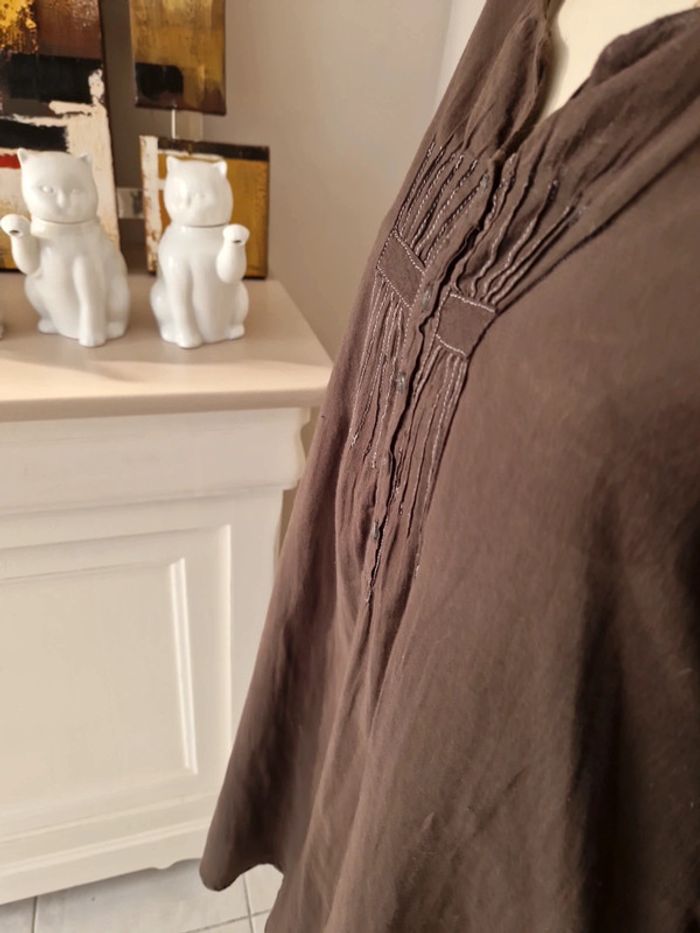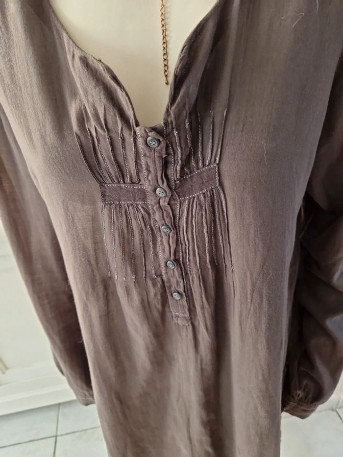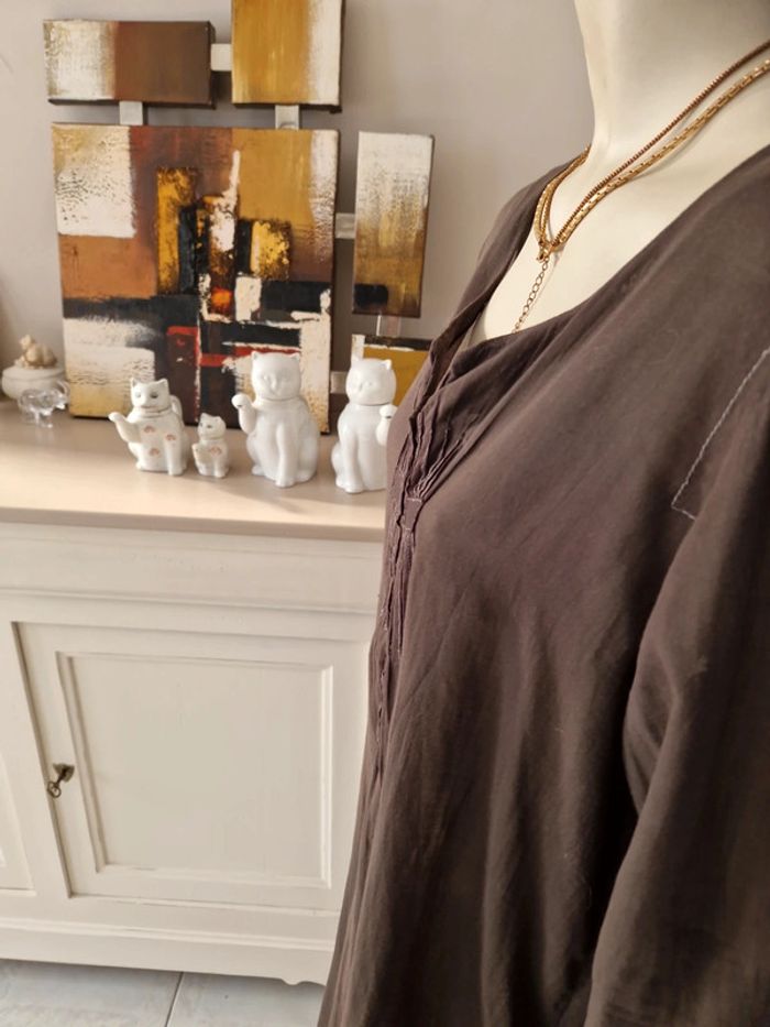 Robe chemise très légère. Manches longues. Décolleté avec u e rangée de boutons et un jeu de plis. Deux fentes sur les côtés en bas. Logo de la marque brodée également en bas. Robe chemise très légère. 100% coton. Hésitez pas consulter mes autres annonces et à profiter des réductions sur les lots. #ellaben_robes #ellaben_grandestailles #ellaben_chemisefemme