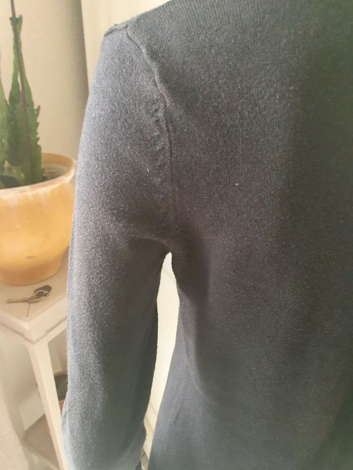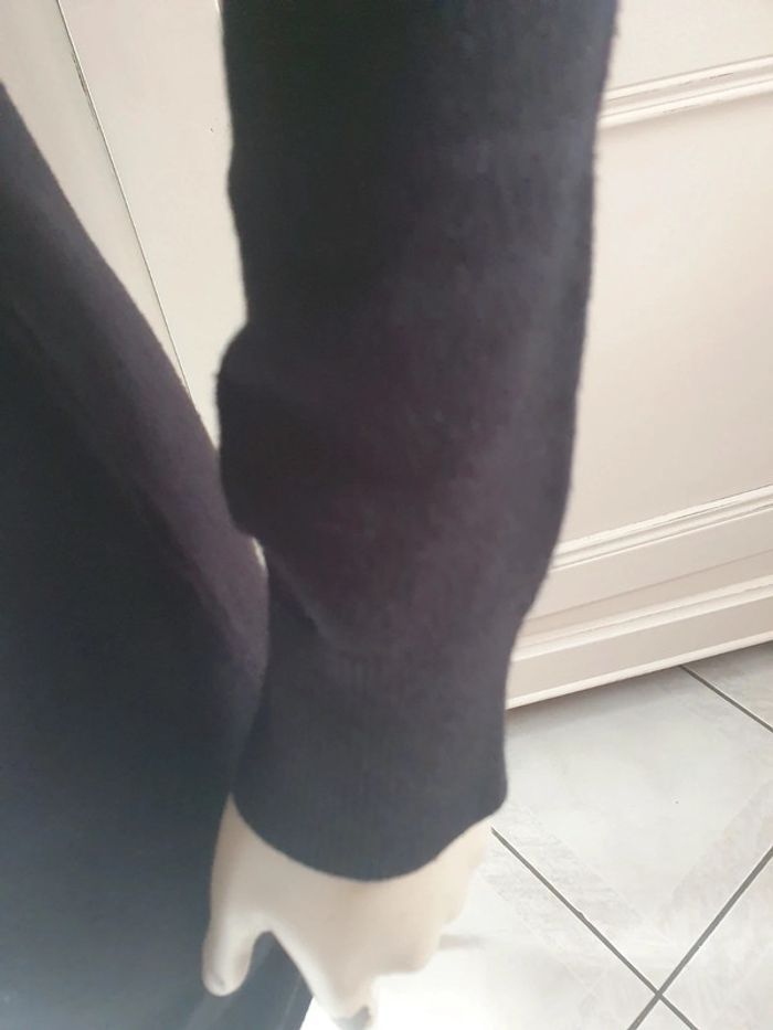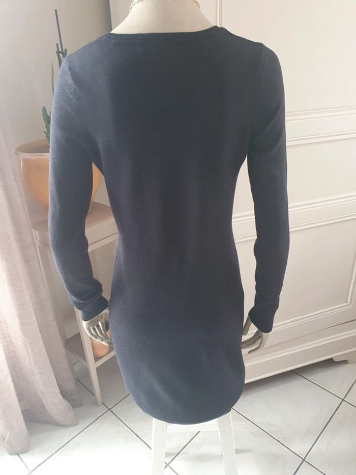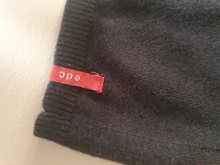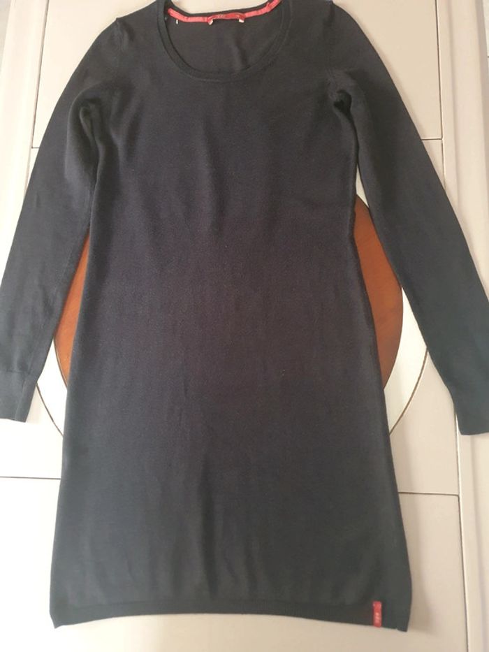 Jolie robe en laine noire manches longues. Col rond. Liseré rouge à l'intérieur au niveau du Col. Logo de la marque en bas de la robe. Simple et chic cette robe. #ellaben_robes #ellaben_robesnoire