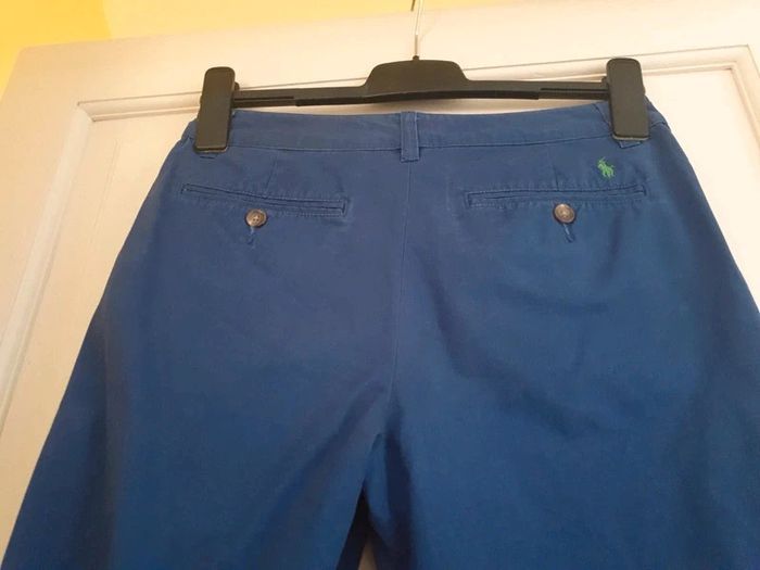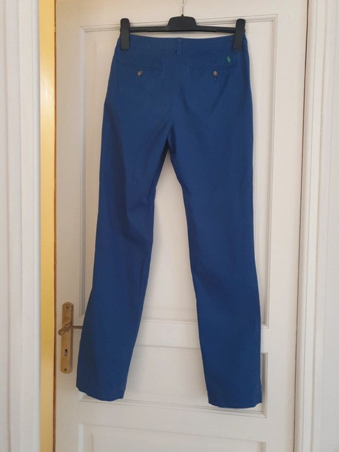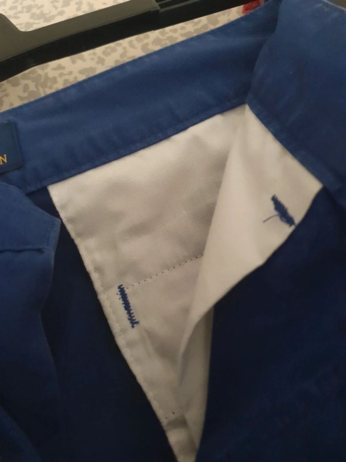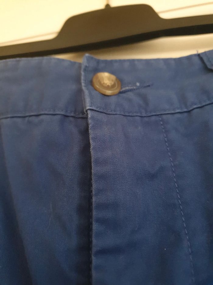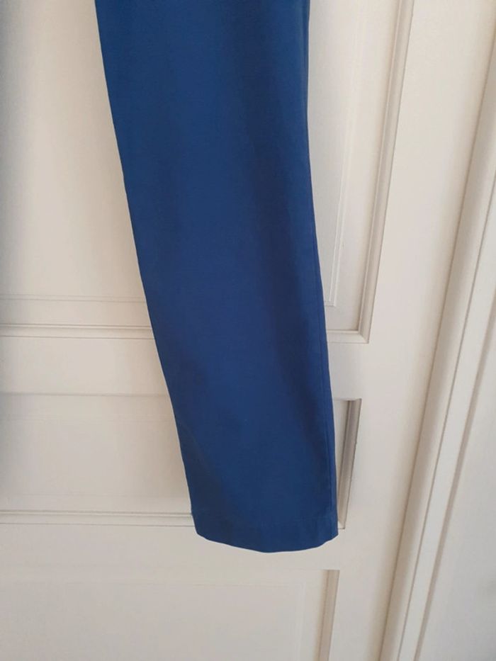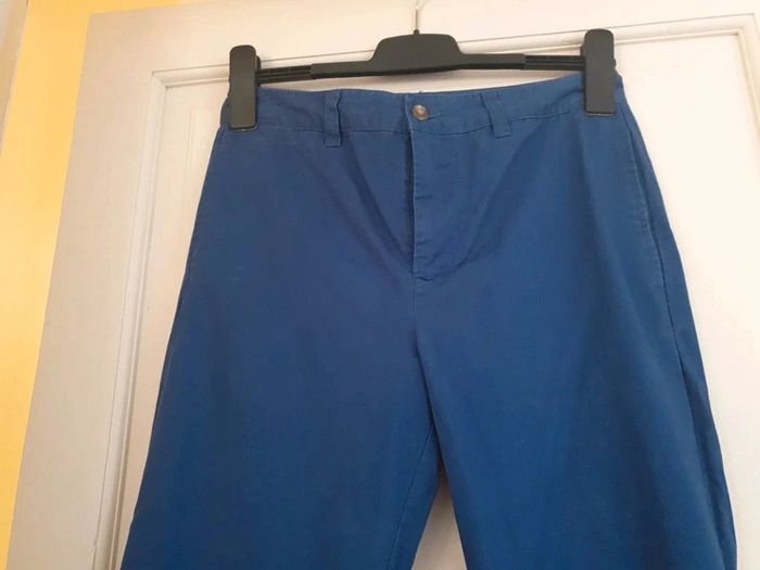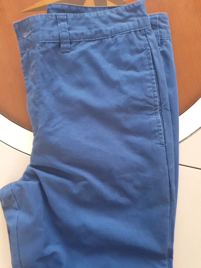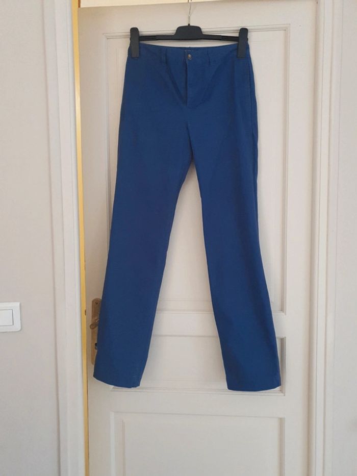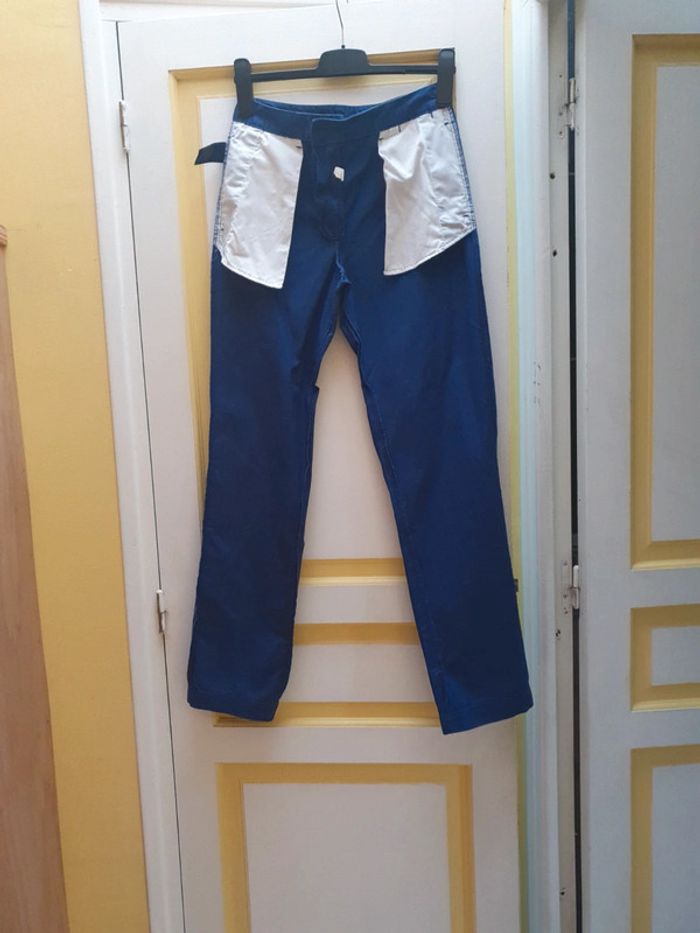 Pantalon droit bleu pétrole avec 5 poches. Deux poches plaquées derrière,deux poches latérales et une tickets de métro. Logo brodée en vert à l'arrière . Touché peau de pêches. #ellaben_pantalonhomme