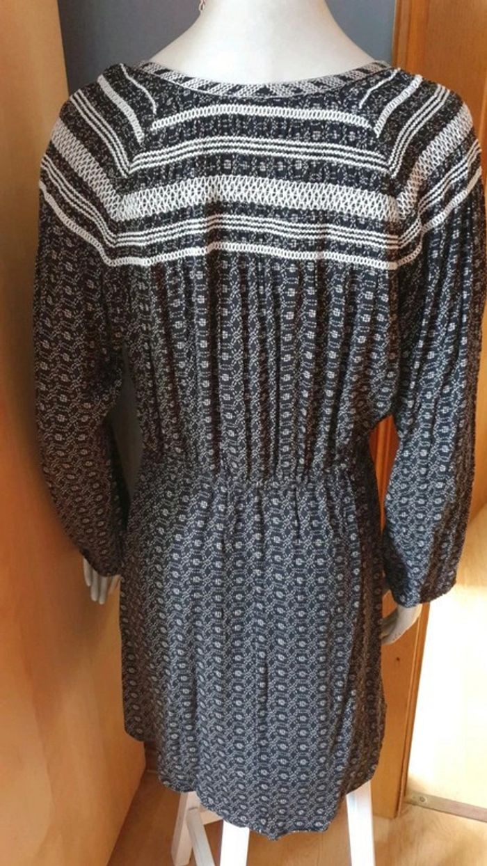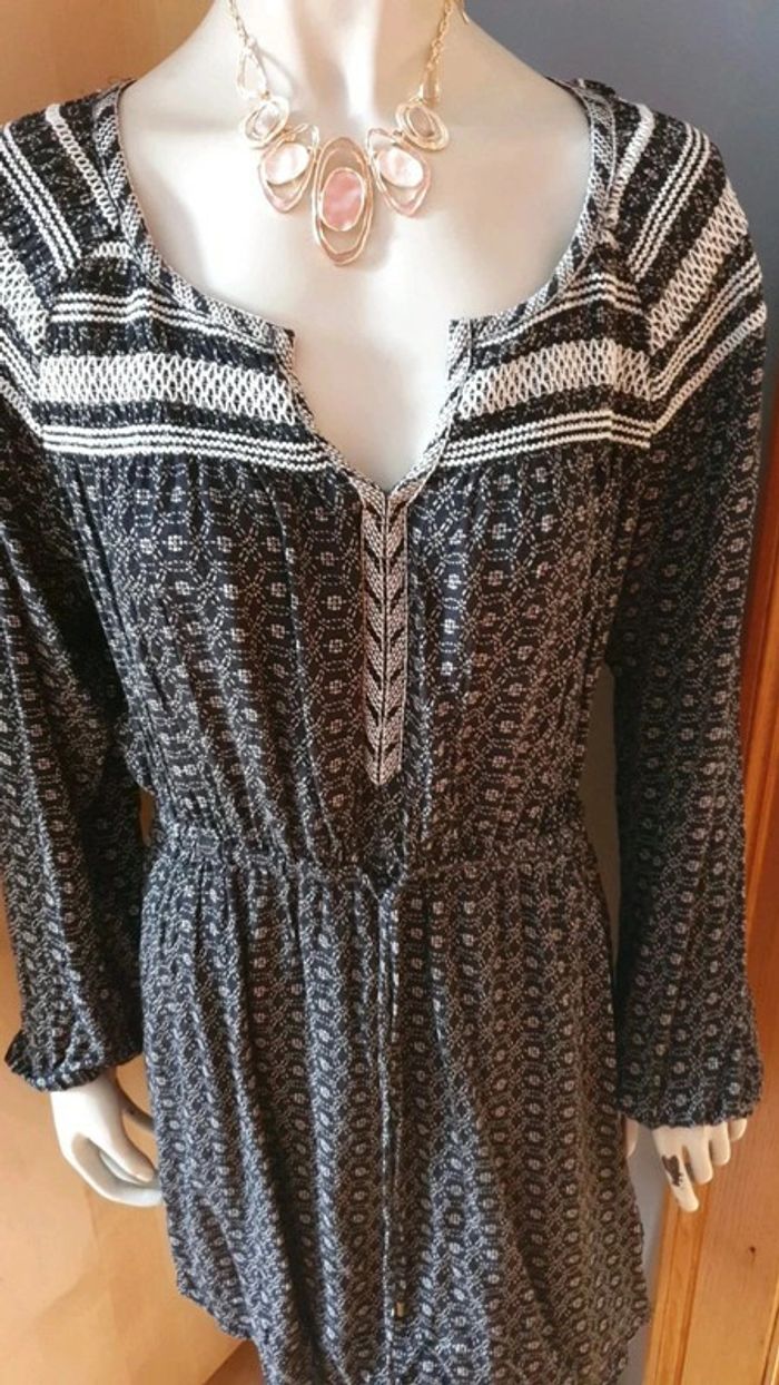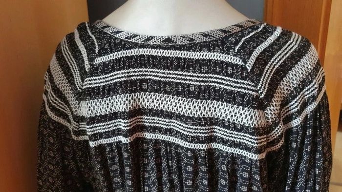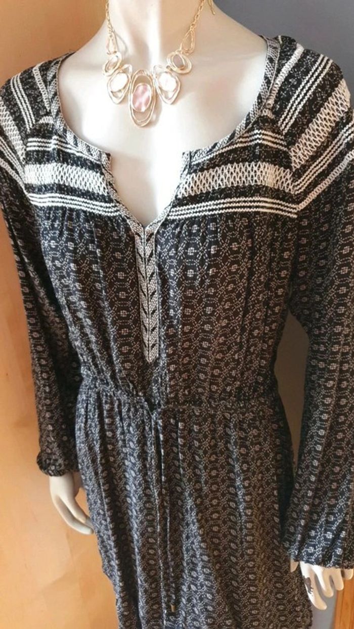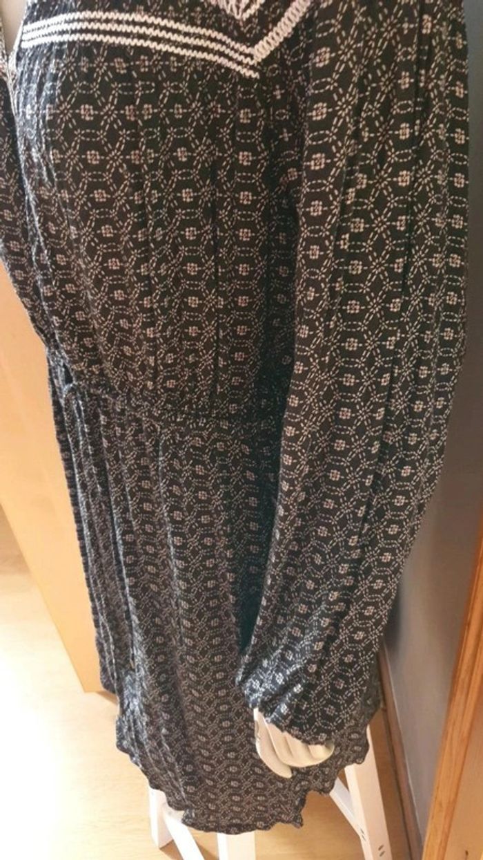 Jolie robe manches longues. Décolleté en V. Broderies aux fils blancs sur les épaules et dans le dos.L'encolure est également garni de broderies. Cordons pour ajuster la taille. Élastique au bouts des manches. Motifs blancs sur tissus noir ⚫. Hésitez pas à consulter mes autres annonces et à faire des lots. Marque Anglaise. #ellaben_robes #ellaben_robesnoire