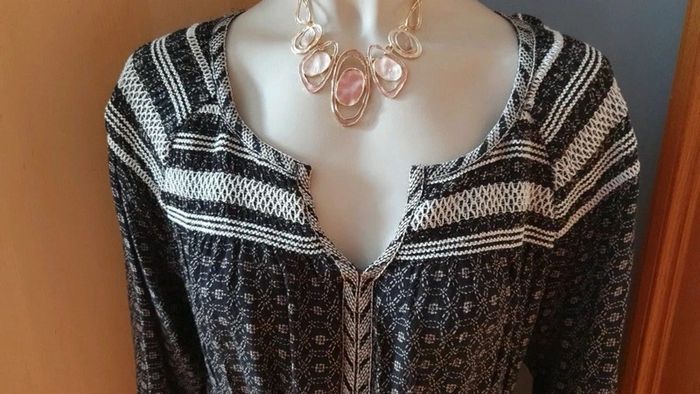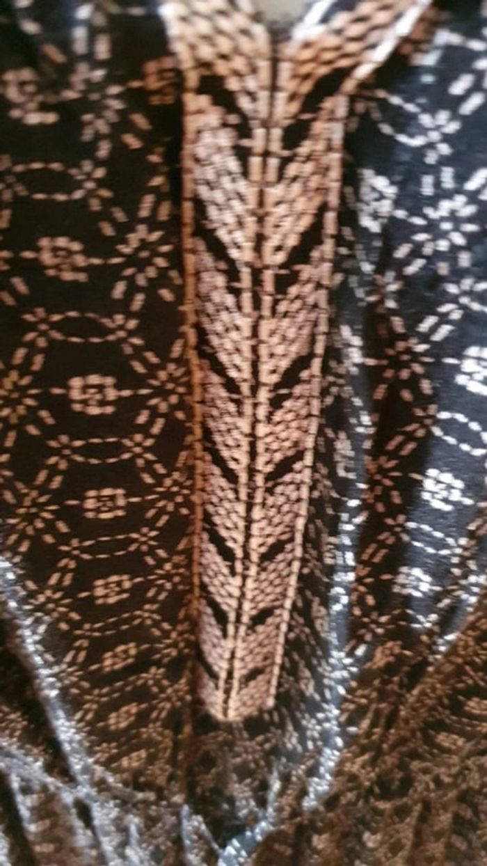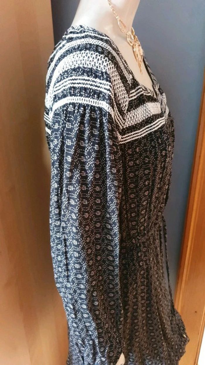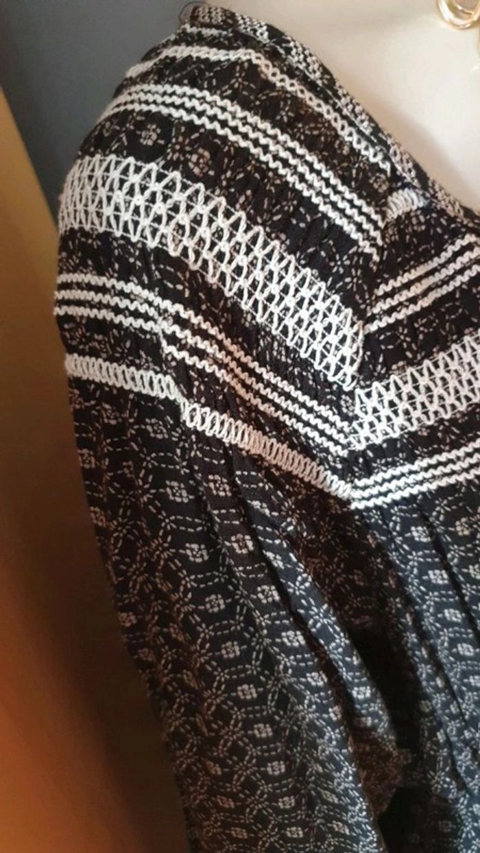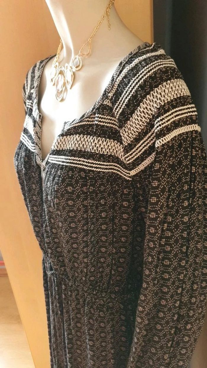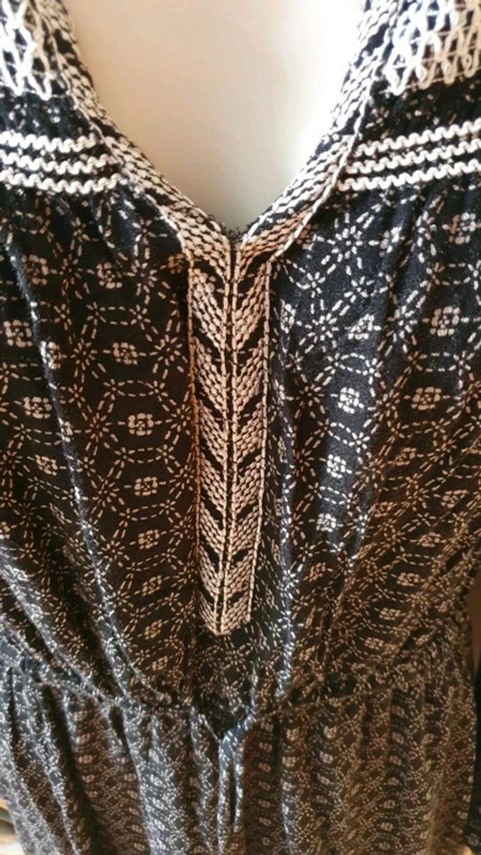 Jolie robe manches longues. Décolleté en V. Broderies aux fils blancs sur les épaules et dans le dos.L'encolure est également garni de broderies. Cordons pour ajuster la taille. Élastique au bouts des manches. Motifs blancs sur tissus noir ⚫. Hésitez pas à consulter mes autres annonces et à faire des lots. Marque Anglaise. #ellaben_robes #ellaben_robesnoire