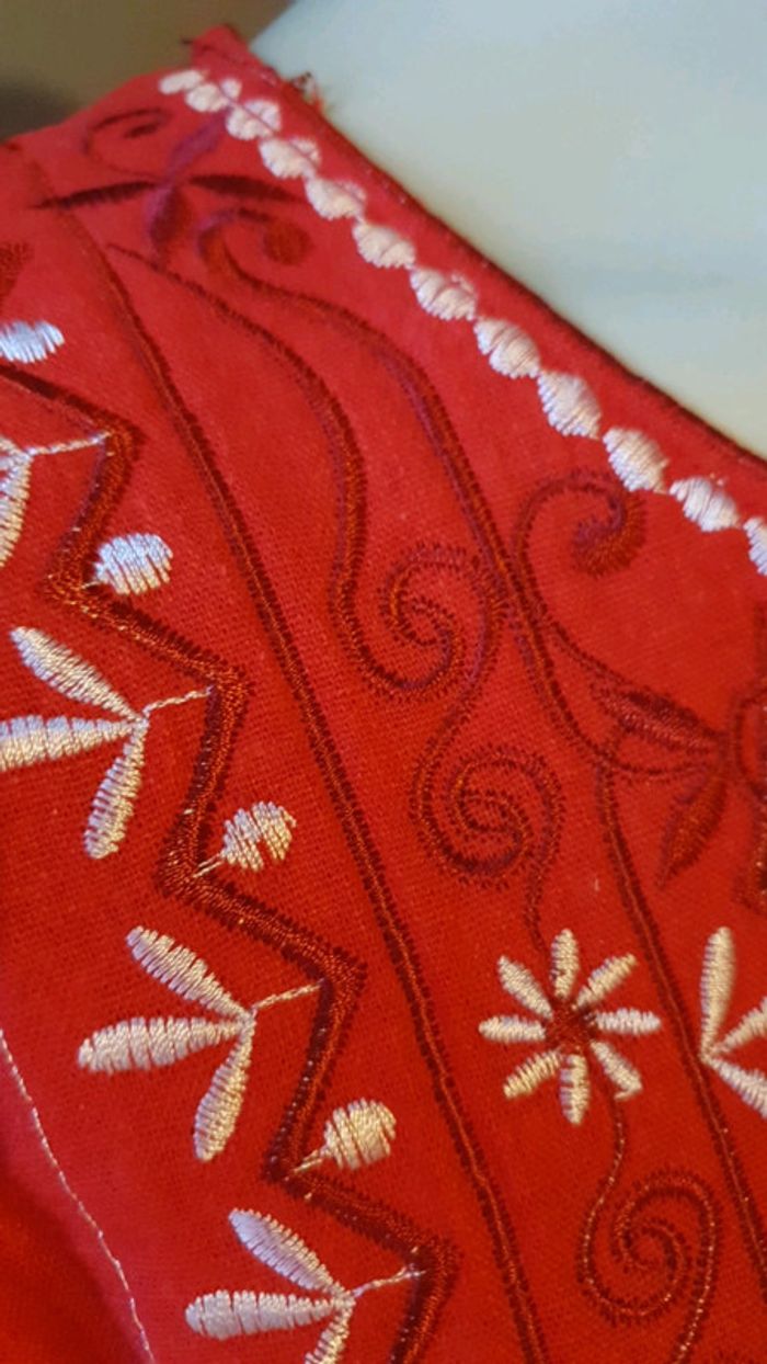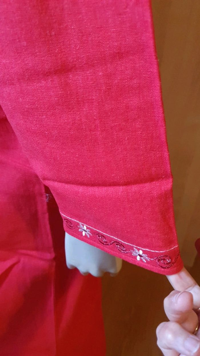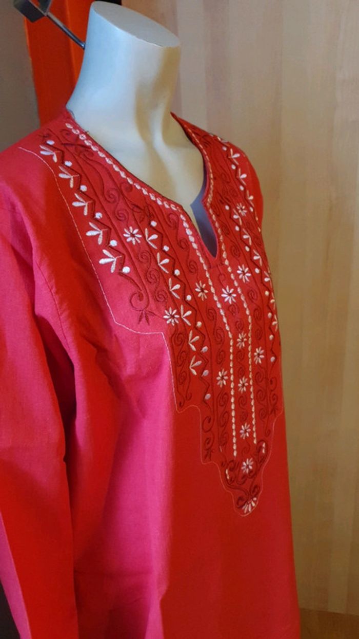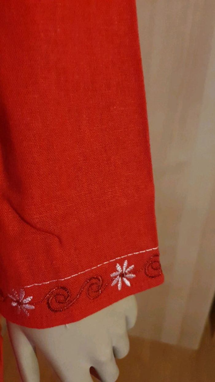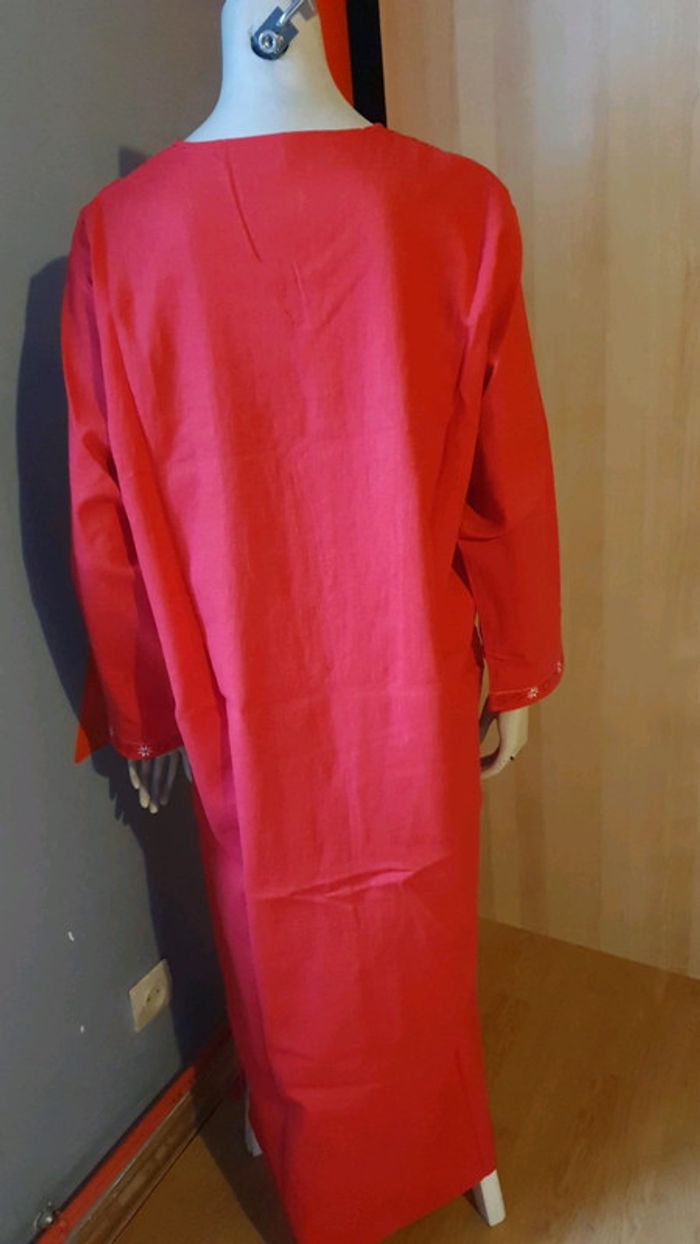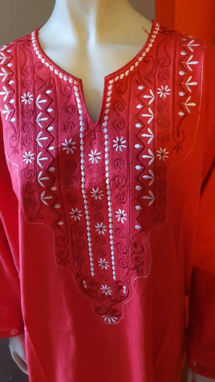 Jolie djellaba neuve de couleurs rouge avec motifs floraux sur la poitrine. Petit décolleté en V. Manches longues brodées au bout . Deux fentes sur les cotés en bas du vêtement . 100%coton très agréable à porté. Hésitez pas à consulter mes autres annonces. #ellaben_robeskabyle #ellaben_vetementstraditionnel