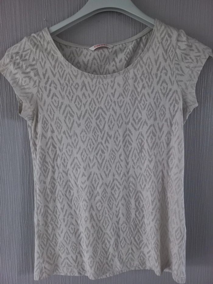 T-shirts crème de camaïeu correspond à une taille S en très bon état légèrement transparent #cbtaille36