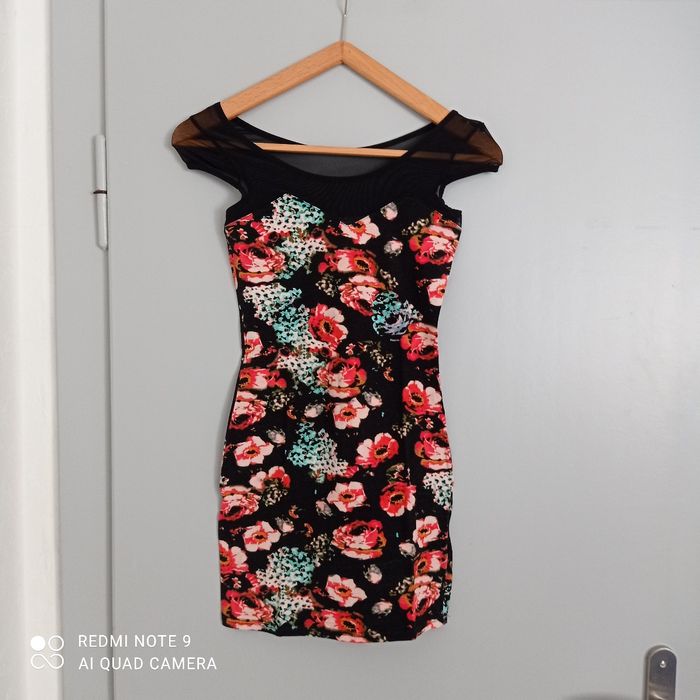 Robe noire à fleurs multicolores t36 - photo numéro 1