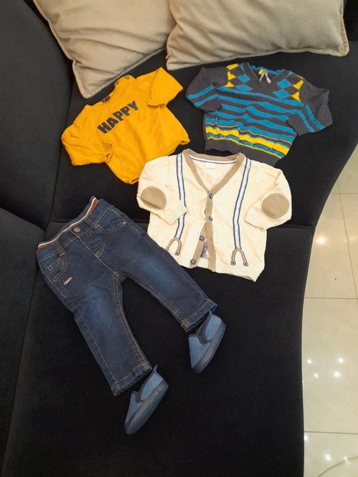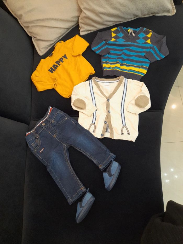 Lot comprenant: 1 pull kiabi 1 pull orchestra 1 gilet H&M 1 pantalon tape à l'œil Chaussures 19 de orchestra Tout est quasi neuf !!! #6moisgarçon_revylette