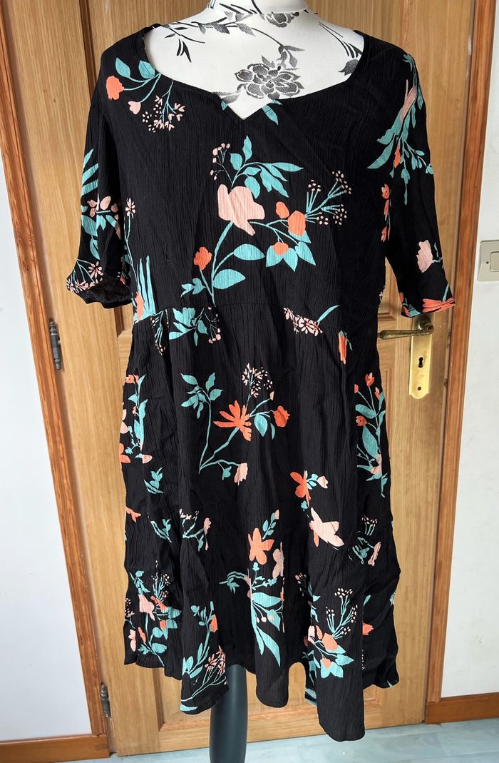 Robe ample noire fleurie taille 38/40 neuve - photo numéro 1