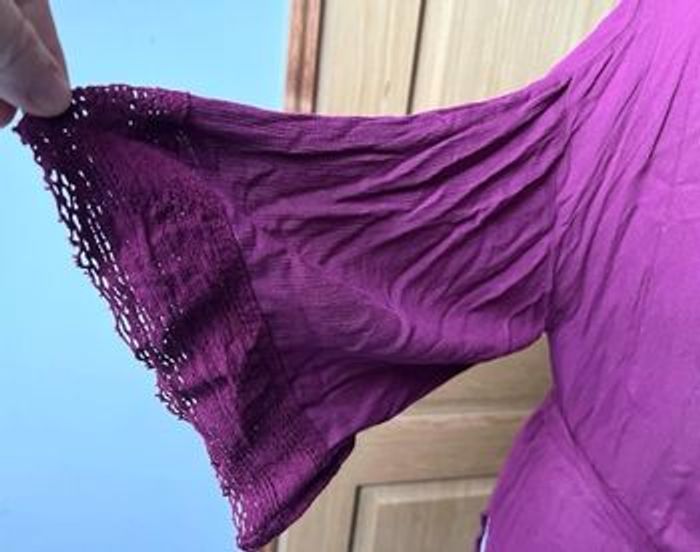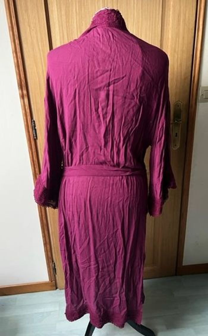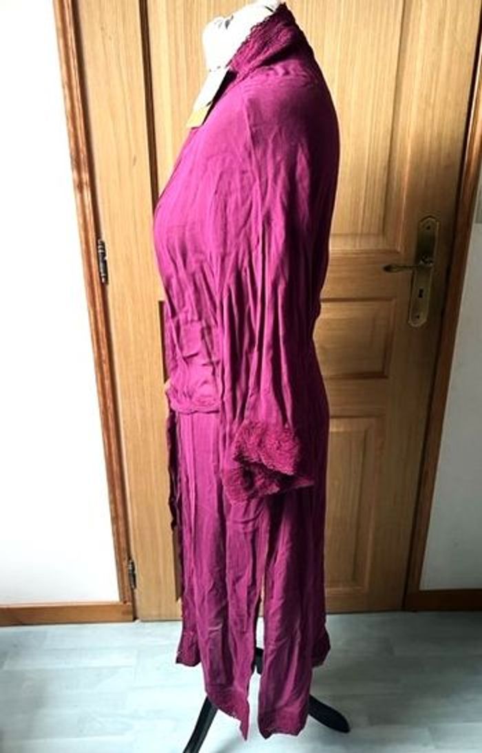 Kimono long vieux rose/prune bordures dentelle macramé taille 36/38 - photo numéro 6