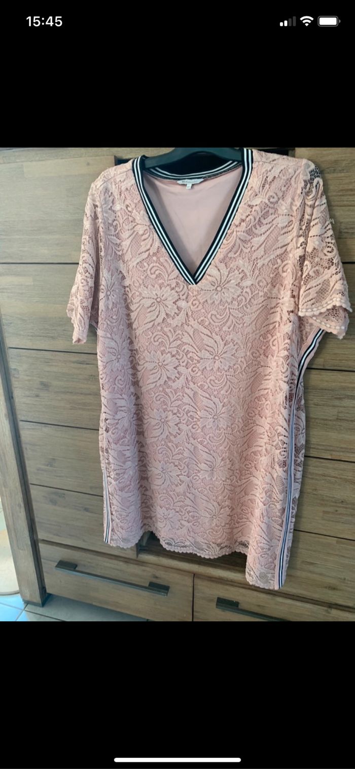 Jolie robe dentelle entièrement doublée portée une fois. Longueur depuis encolure dos : 97 cm