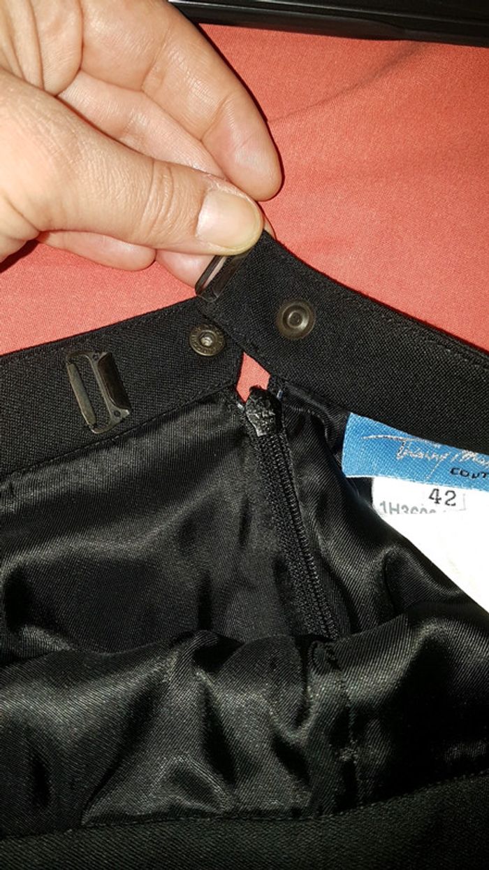 Jamais portée, 2 poches avant, fermeture avec bouton et pince à l'arrière, fente sur le devant ouverte à 41 cm, longueur totale 64 cm, un vrai bijoux ❤