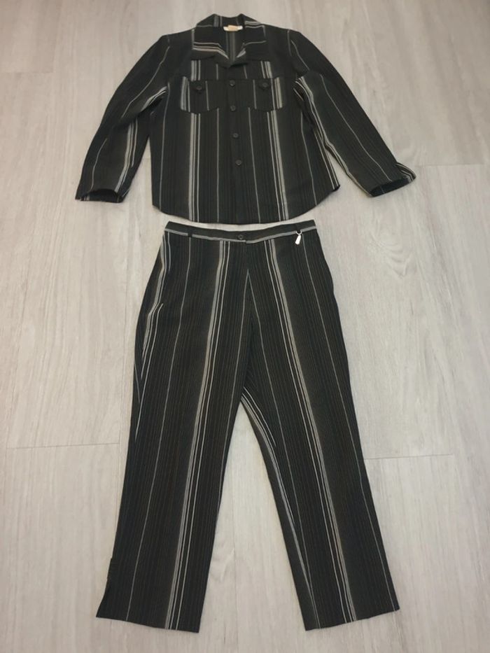 Ensemble taille 42 en parfait état mais prévoir de recoudre un bouton manquant en bas du pantalon (voir photo - ne se voit pas porté) ⭐