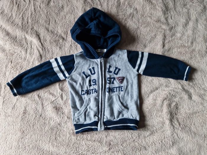 Gilet zippé à capuche gris et bleu 6 mois Lulu castagnette #6moisgkoralyc #bébékoralyc