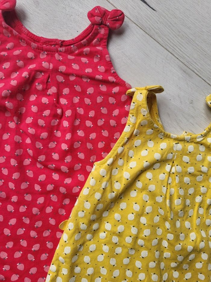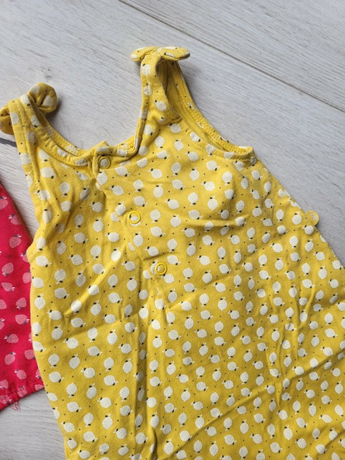 Lot de 2 combinaisons estivales fille 3 mois neuves. Motifs citrons et fraises. Trop choupinettes. Obaibi #3moistatiana #citrons #fraises #combinaison #été #3mois