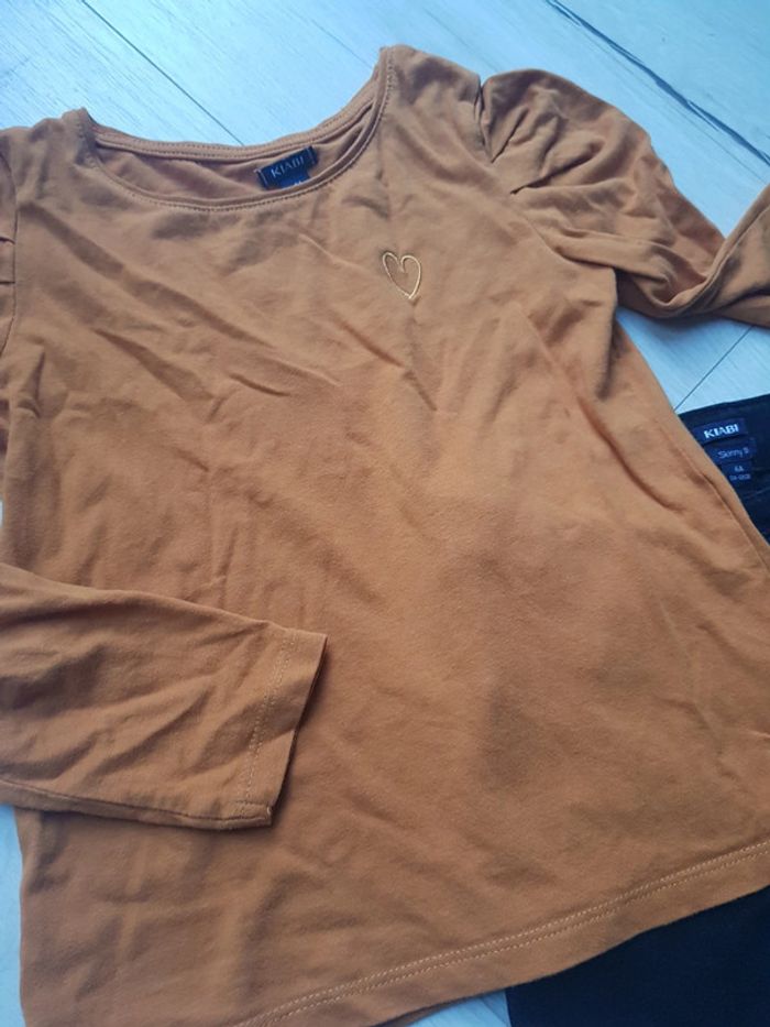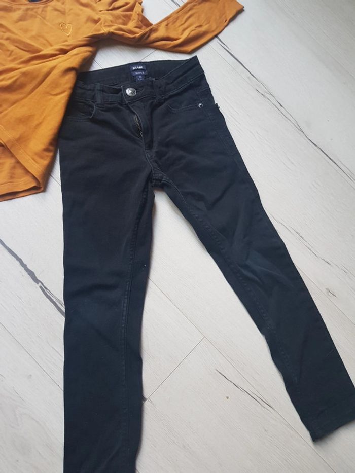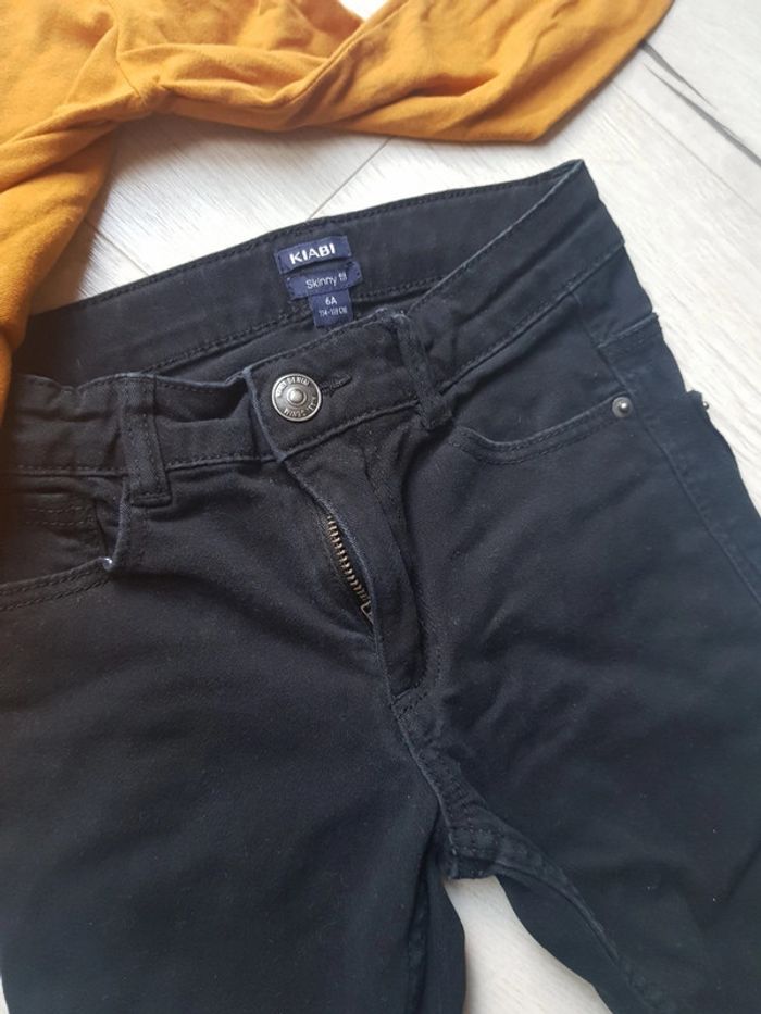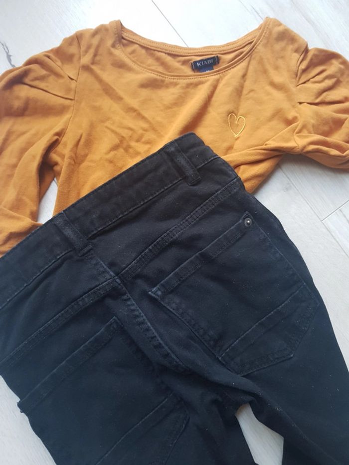 Comme neuf. Tee shirt moutarde epaules bouffantes (petit 8ans) Jean skinny fit noir Taille 6ans Kiabi. #6anstatiana #kiabi #skinny #moutarde