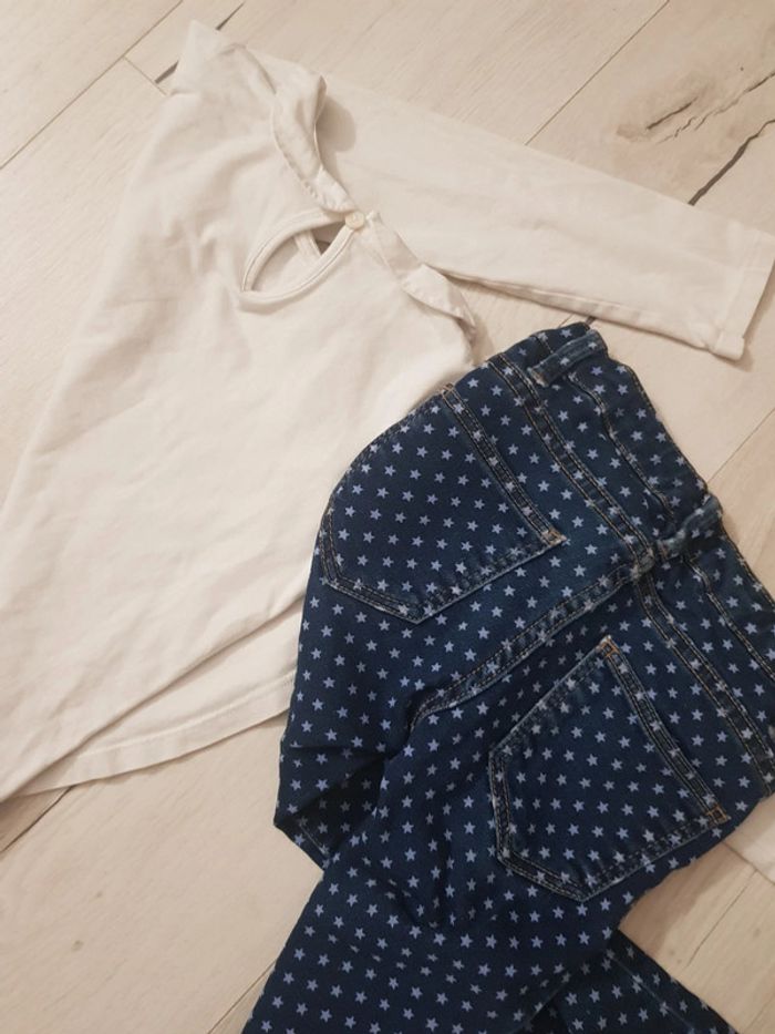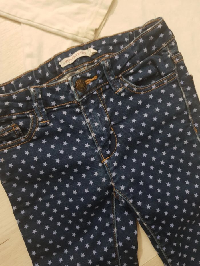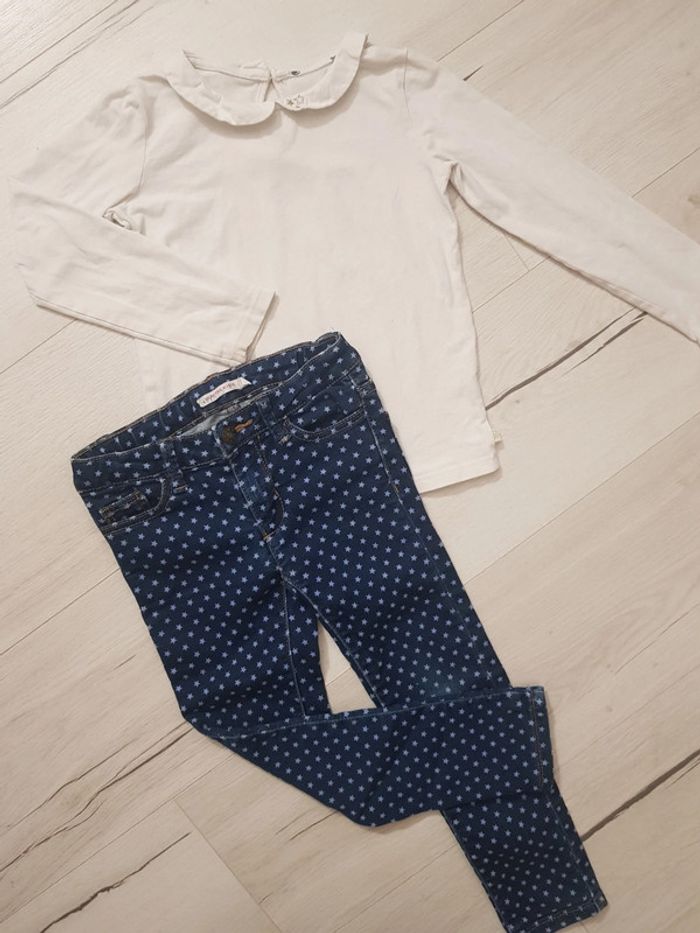 Très bon état. Joli jean souple à pois monoprix kids. Polo col Claudine okaidi blanc. Taille 4ans. Genoux du jean à peine frottés, pour chipoter. #4anstatiana #colclaudine #pois #jean #monoprix #4ans