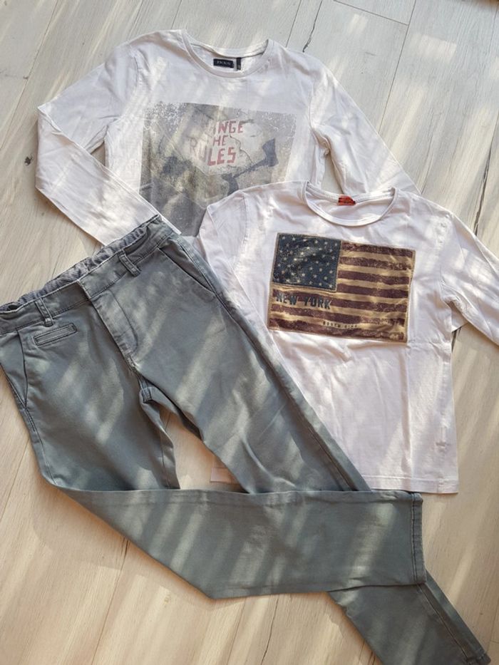 Excellent état. Pantalon bleu gris tape à l'oeil Tee shirt tape à l'oeil new York Tee shirt ikks blanc. Taille 10ans #10anstristan #ikks #teeshirt #tao #10ans #newyork
