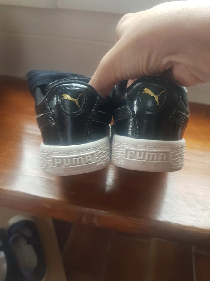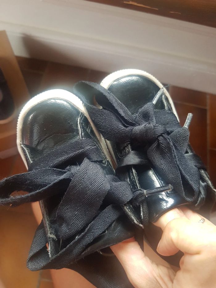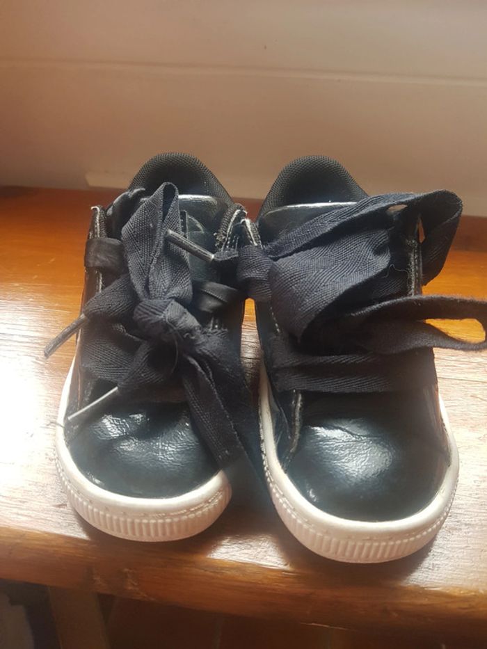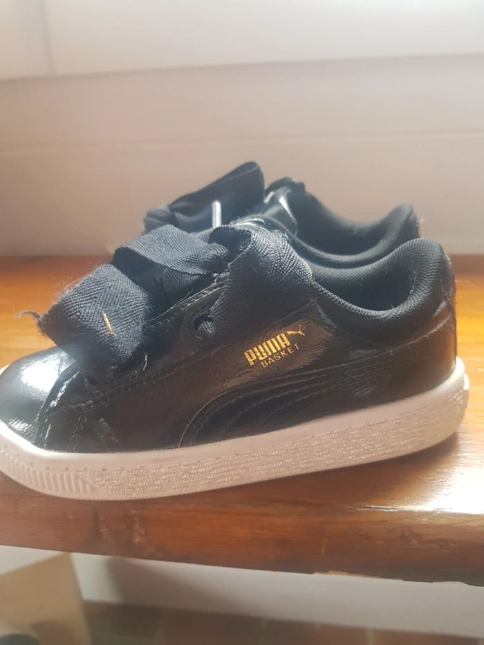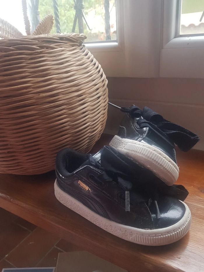 Peu portées. Trop mignonnes. Noires brillantes à lacets. Puma pointure 26. #chaussurestatiana #baskets #puma #26 #noires