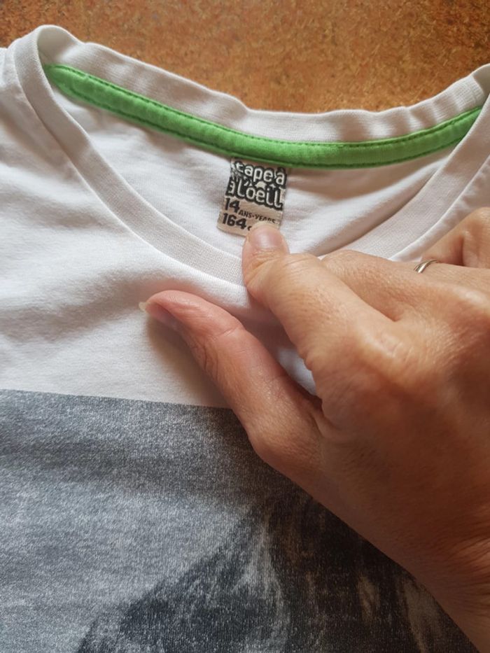 Comme neuf. Trop juste pour mon fils. Tape à l'oeil tee shirt blanc avec garçon à moustache. Taille 14ans. #14anstristan #teeshirt #tapealoeil #tao #14ans