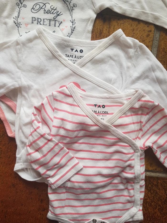 Très bon état (à signaler mini tâche sur l'un d'eux cf.photo). Taille 6mois. Tape à l'oeil la redoute... #6moistatiana #lot #body #6mois #tao