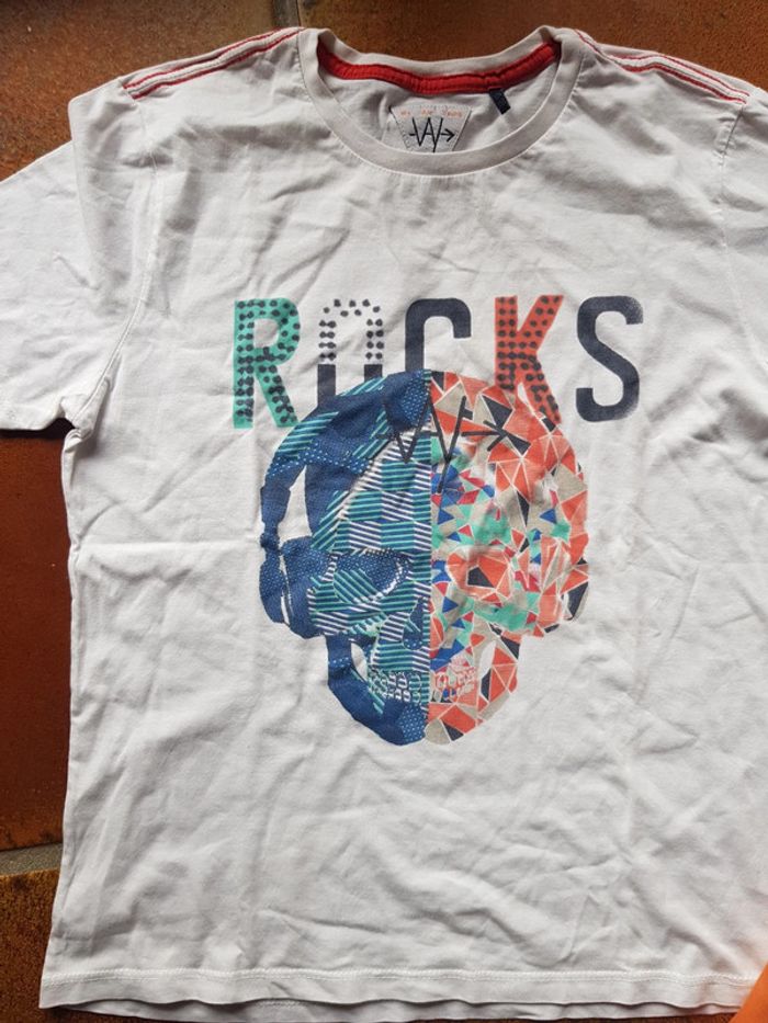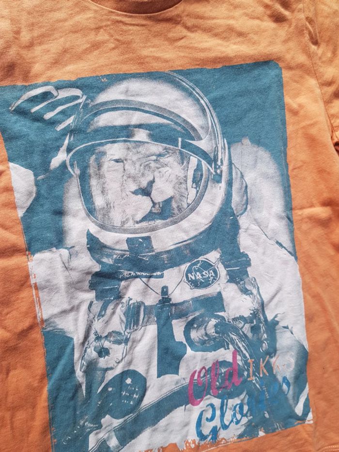 Excellent état. Motifs nasa astronaute, rock, tête de mort. Tee shirts estivaux garçon 12ans. Orange et blanc. #12anstristan #teeshirt #ikks #12ans #ete #estival #nasa #rock #tetedemort