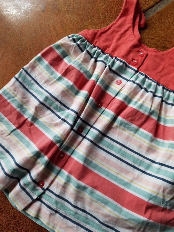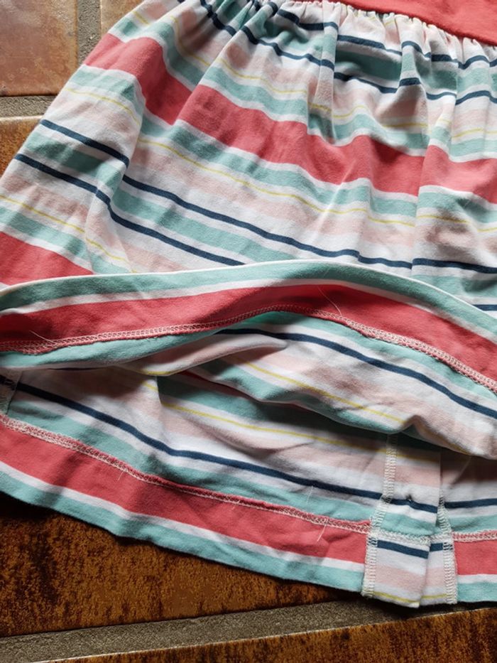Excellent état. Sublime petite robe à porter seule ou en tunique car plutôt courte. Jean Bourget coloris turquoise corail blanc à rayures. Taille 3ans. #3anstatiana #robe #jeanbourget