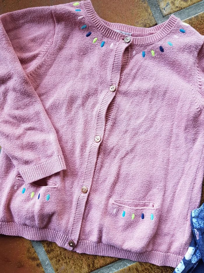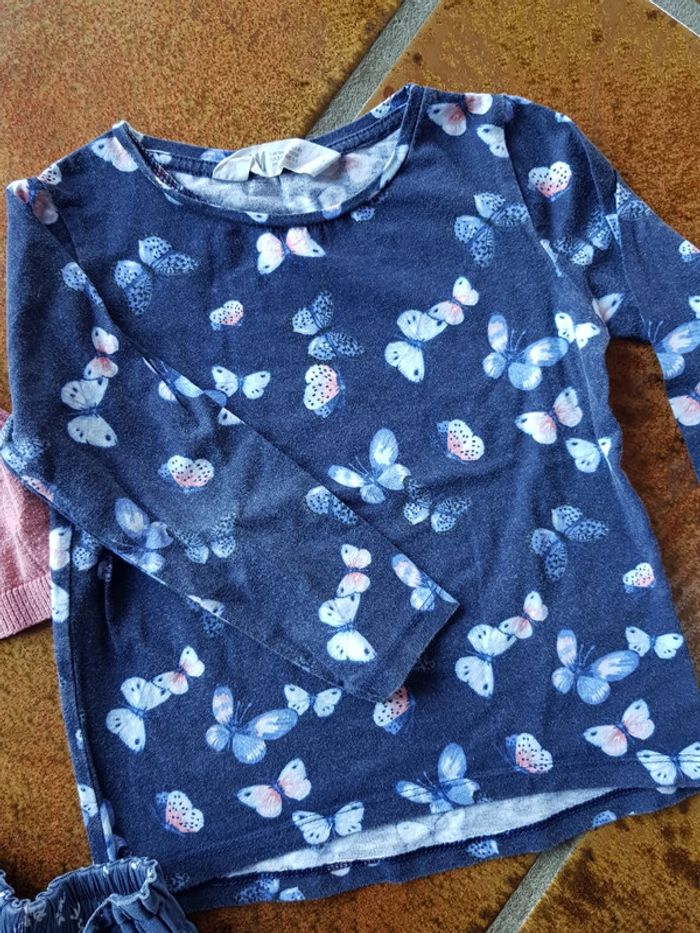Bien porté. Taille 3ans. Gilet rose du pareil au même (dpam). Jupe sergent major. Tee shirt papillons h&m. Très mignon très girly. #3anstatiana